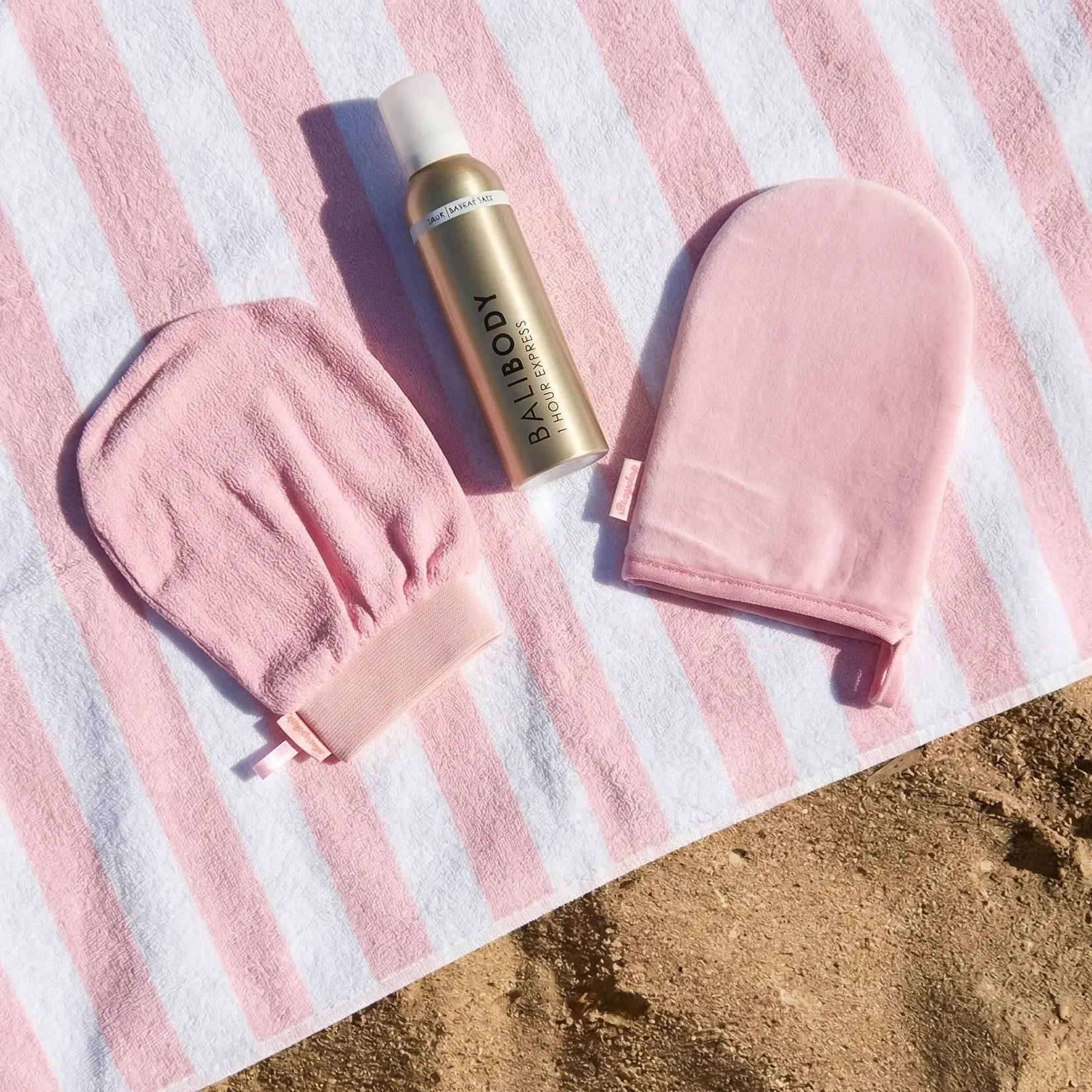 - Applique une petite quantité de Bali Body 1 Hour Express Tan sur le Boozyshop Tanning Mitt.