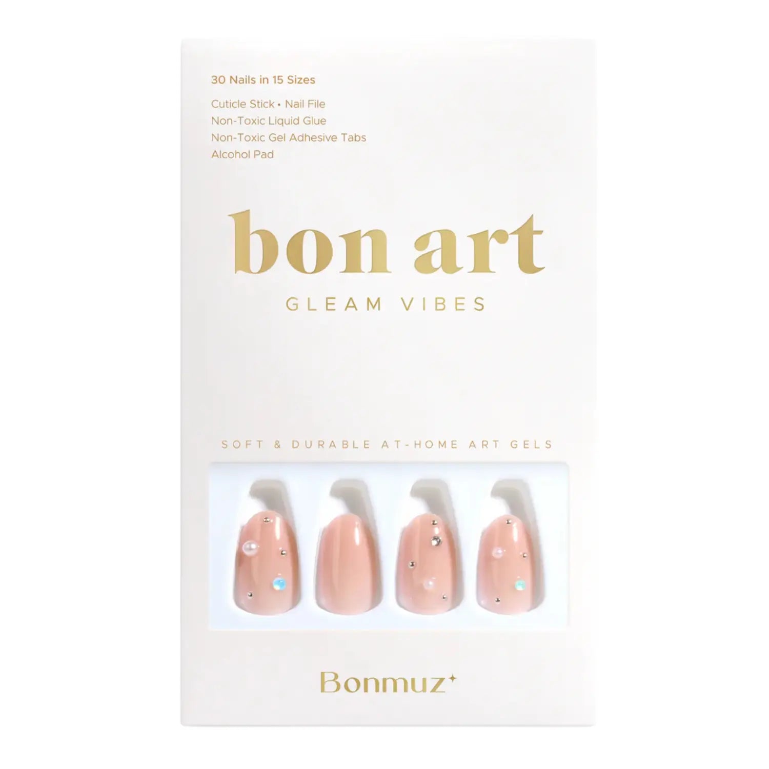 Les Bonmuz Press-On Nails Bare Dot sont le parfait mélange de quiet shine et effortless edge. Ces press-on nails présentent une base nude clean avec des studs subtilement répartis et des accents effet perle pour un look minimaliste mais réfléchi.