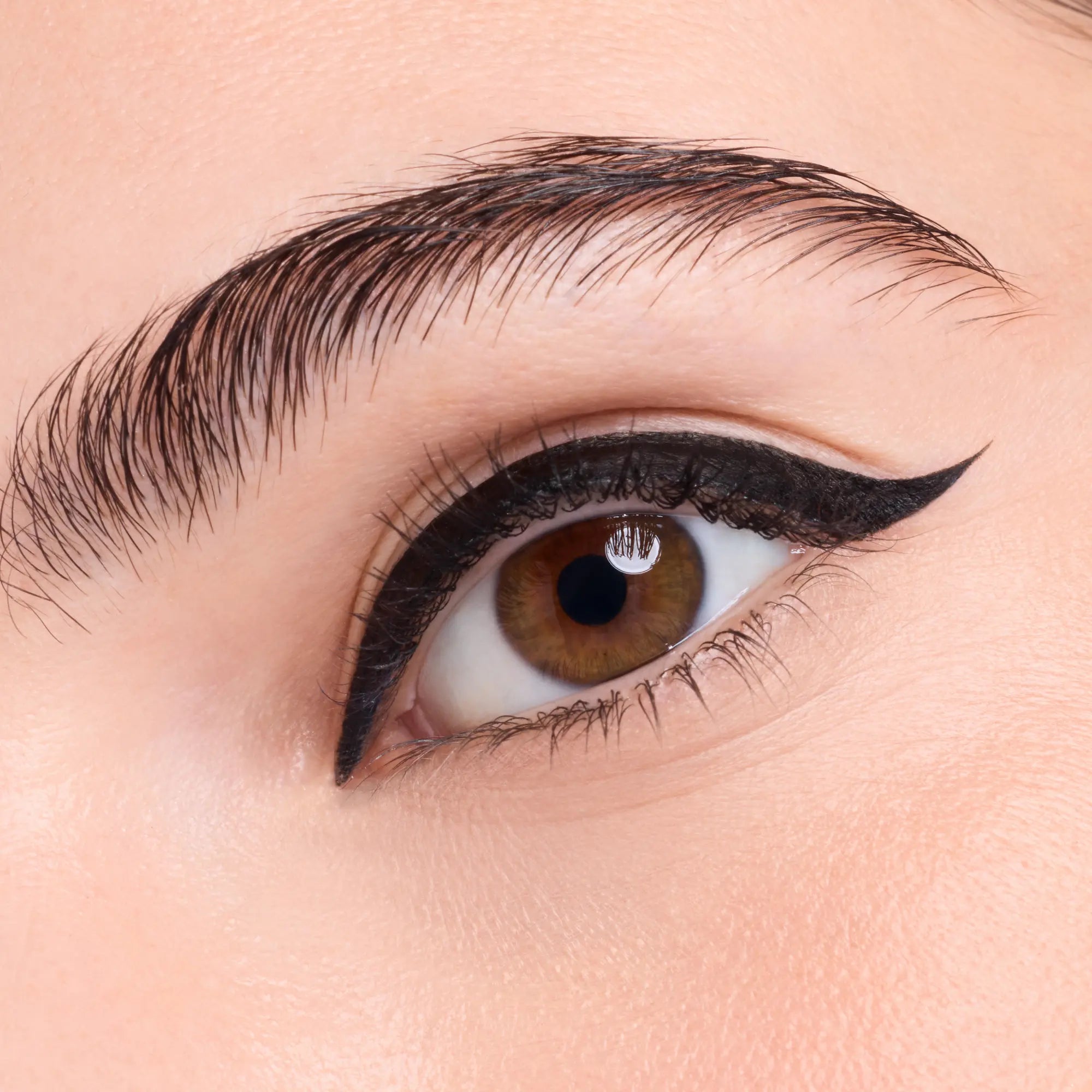 Die intensiv schwarze Formel gleitet sanft über die Haut und trocknet schnell zu einer klaren, matten Linie, die den ganzen Tag hält. Die flexible Pinselspitze sorgt für maximale Kontrolle, von feinen Linien bis zu dramatischen Wings. Für eine ruhige Hand stütze deinen Ellbogen auf dem Tisch ab und arbeite mit kurzen, gleichmäßigen Strichen entlang des Wimpernkranzes. Perfekt für Eyeliner-Fans auf jedem Level.