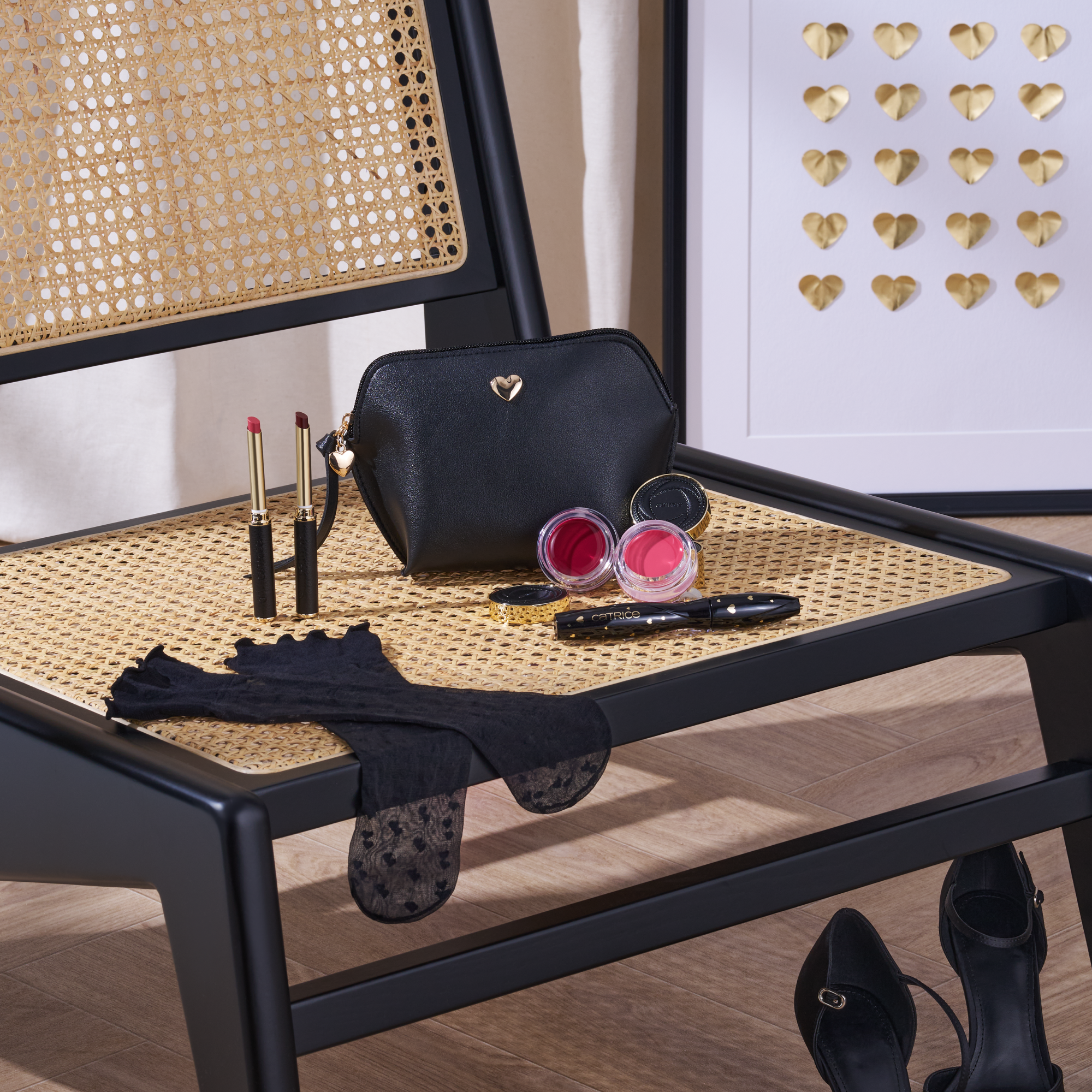La Catrice Valentine Who? Makeup Bag Love At First Zip est la pochette parfaite pour tes beauty must-haves avec une touche de romantisme. Cette trousse de maquillage élégante est fabriquée en similicuir noir lisse et finie avec un adorable détail de cœur doré qui attire immédiatement le regard. Minimaliste, élégante et super pratique pour un usage quotidien ou en déplacement.
