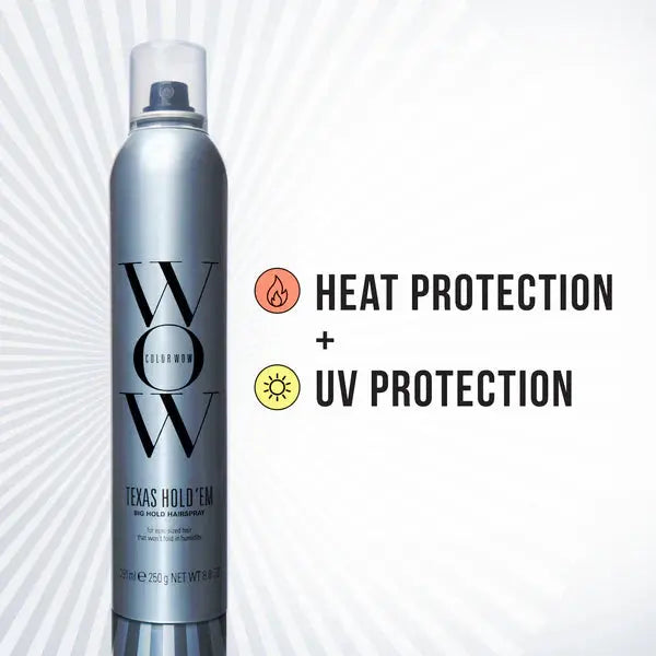Le Color Wow Texas Hold ‘em Big Hold Hairspray est votre nouveau must-have pour des coiffures qui tiennent vraiment sans effet cartonné. Ce spray offre une tenue maximale sans résidus blancs et maintient votre look impeccable même en cas d’humidité élevée.