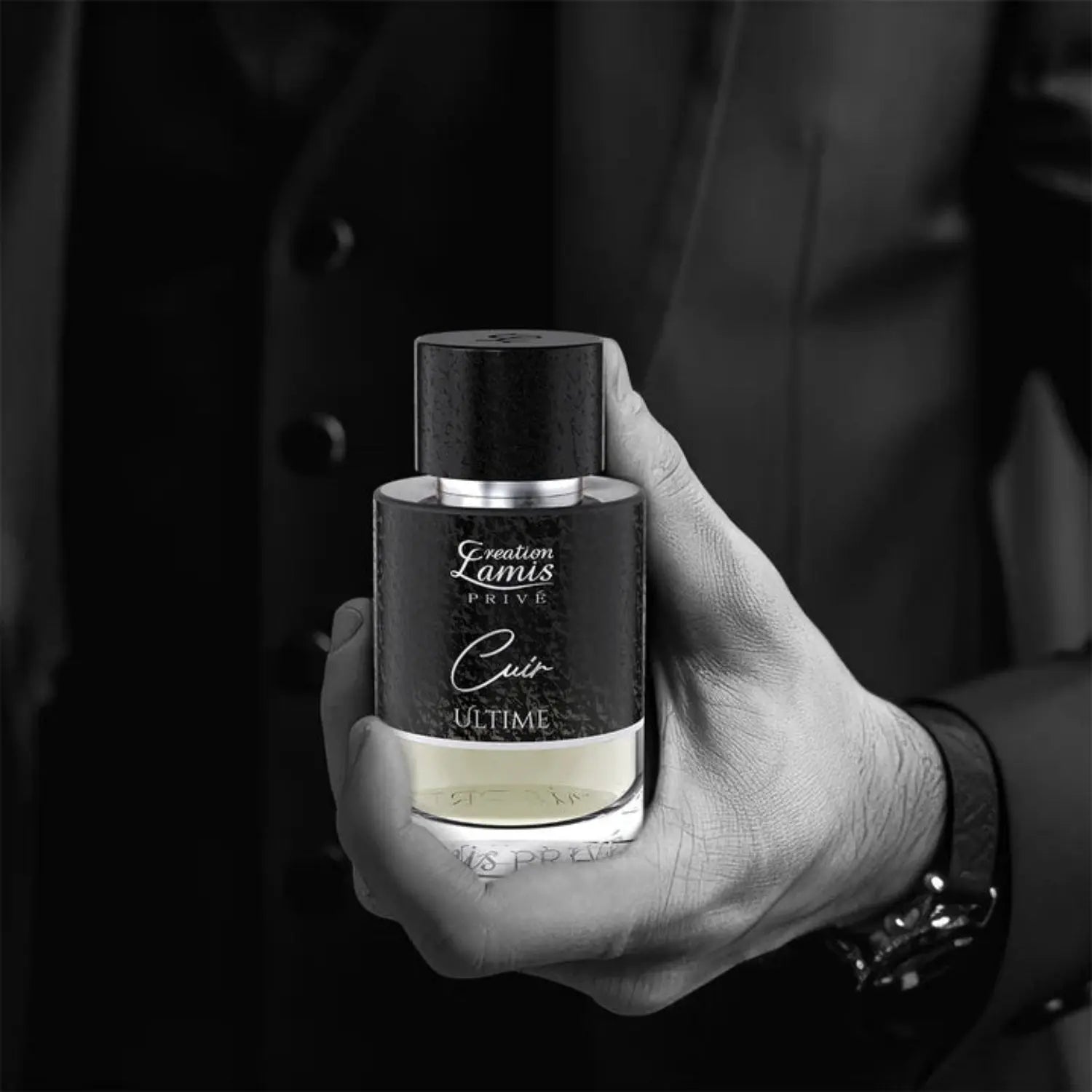 Le Creation Lamis Prive Cuir Ultime n’est pas un parfum comme les autres, c’est un vrai statement en flacon. L’ouverture est fruitée et surprenante avec des baies glacées, de la sauge sclarée et de la poire juteuse. En cœur, de la puissance avec du jasmin, de la rose rouge et une touche de mousse terreuse. La base ? Un mélange unique de bakhour, d’oud et de barbe à papa pour une finition fumée et sucrée qui laisse une empreinte durable.