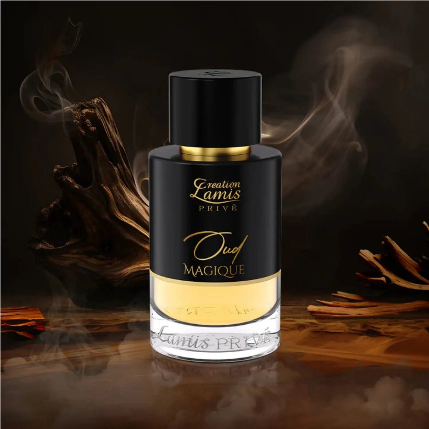 Le Creation Lamis Prive Oud Magique est un parfum puissant et luxueux qui vous enveloppe immédiatement de chaleur et de mystère. Il s’ouvre sur un mélange épicé de safran et de muscade, avant de révéler un cœur centré sur le bois d’agar (oud) riche et profond. En fond, le patchouli et le musc apportent une finition sensuelle et envoûtante qui reste longtemps sur la peau.