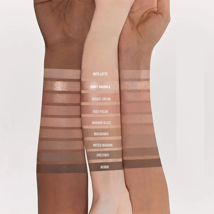 La Muted Nuts Eyeshadow Palette est un incontournable si vous aimez les tons chauds et noisettés qui apportent profondeur et élégance à votre maquillage. Inspirée des teintes riches des amandes grillées, des noisettes et des noix de pécan, cette palette contient tout ce qu’il faut pour un look doux et sophistiqué ou un maquillage glamour avec une touche de brillance.