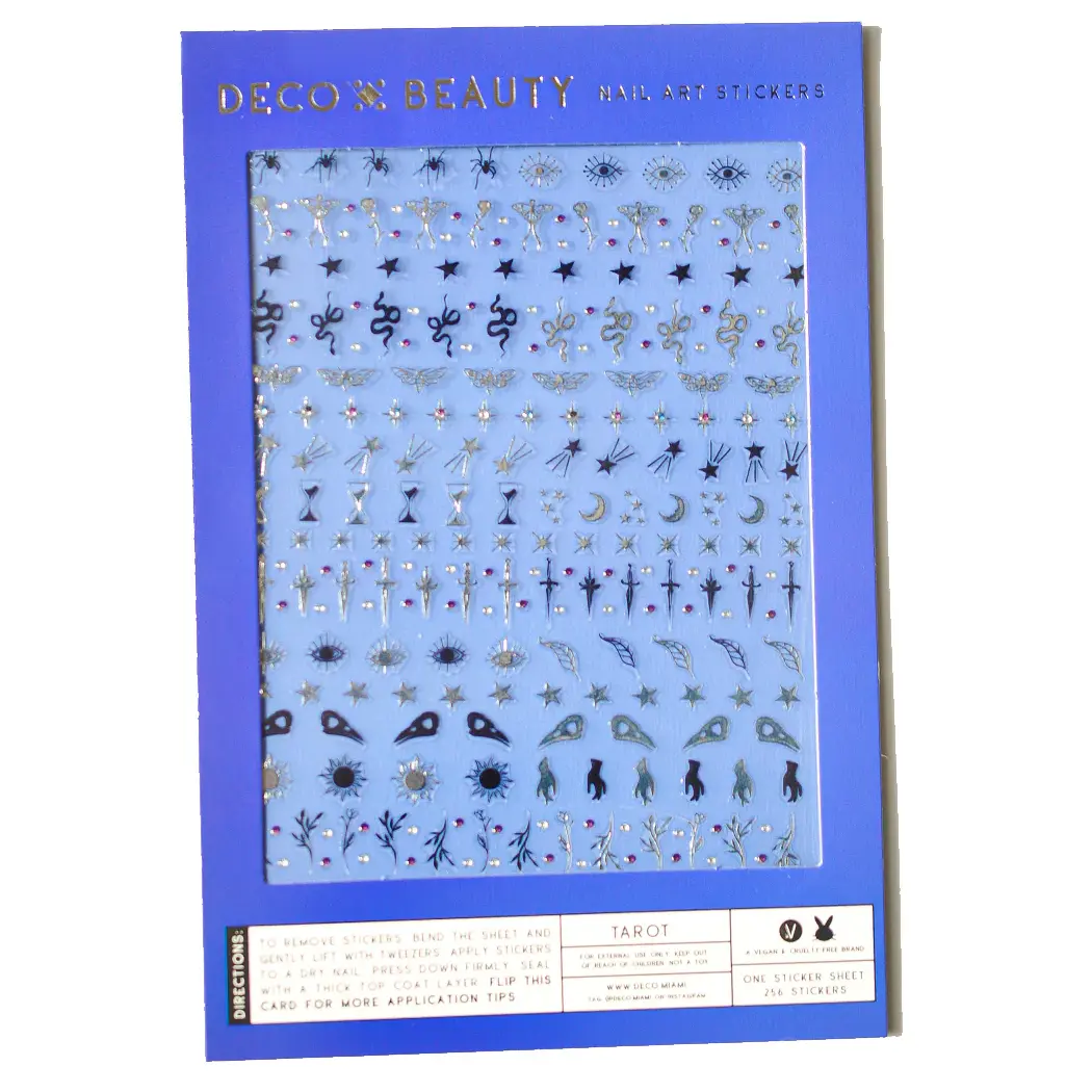 Les Deco Beauty Nail Art Stickers Tarot donnent instantanément à votre manucure une vibe celestial witchy. Pensez à des designs mystiques argentés inspirés du tarot, des étoiles et de détails cosmiques qui donnent à vos ongles une allure magique et mystérieuse.