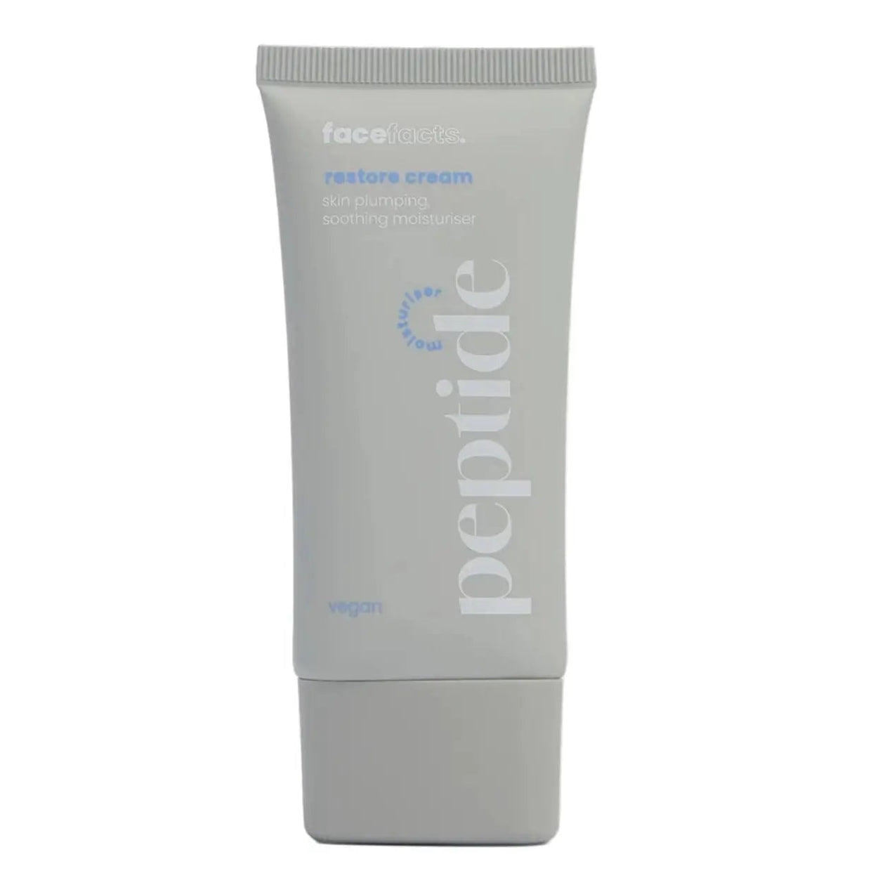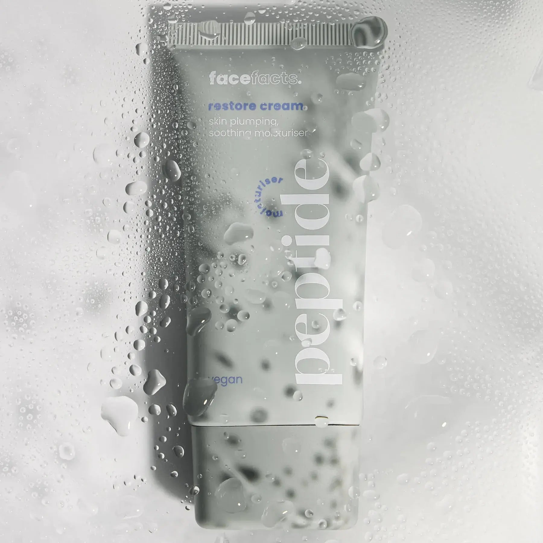 La Face Facts Peptide Restore Cream est la crème de confort ultime pour ta peau ! Ce soin hydratant riche mais léger fond instantanément sur la peau et regorge d’ingrédients nourrissants qui hydratent, apaisent et raffermissent, sans laisser de film gras ni sensation lourde.