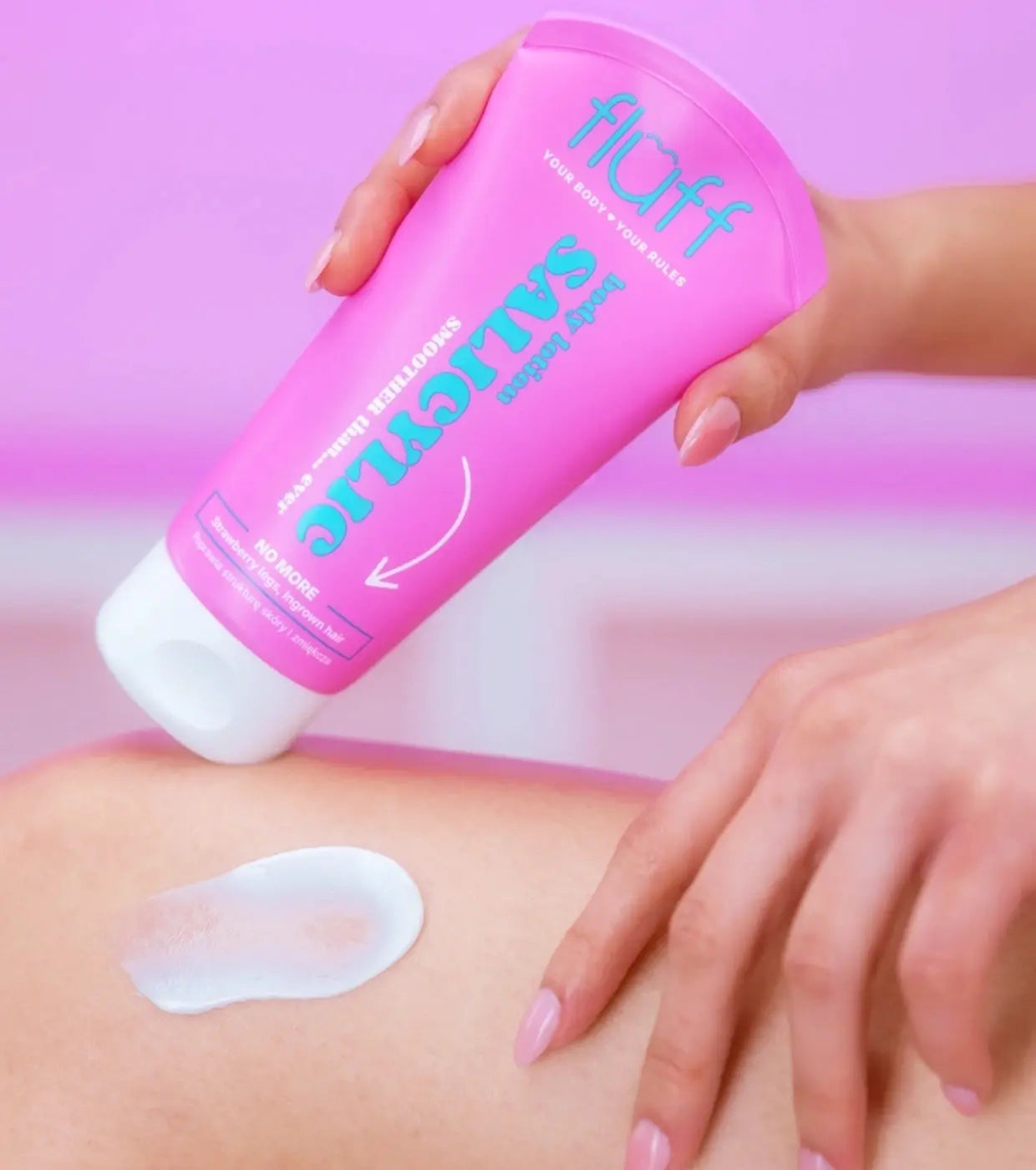 La Fluff Smoothing Body Lotion Salicylic Acid est ton essentiel smooth skin pour une peau uniforme, douce et confortable. Cette body lotion est spécialement développée pour les peaux sujettes aux irritations, aux poils incarnés et aux razor bumps. La formule à base de Salicylic Acid exfolie en douceur les cellules mortes, aide à désobstruer les pores et réduit les imperfections.