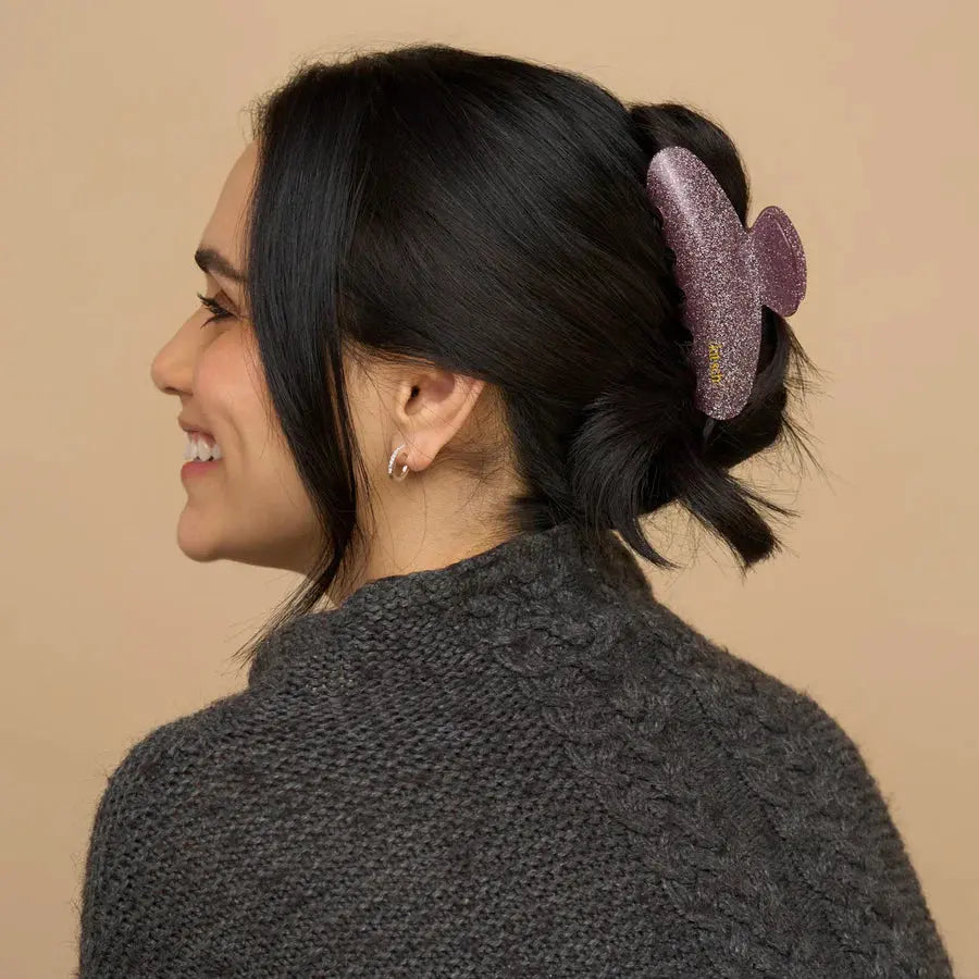 Cette pince est ultra facile à utiliser et parfaite pour un half-up rapide ou pour attacher l’ensemble de ta chevelure avec style. Fabriquée à partir d’acrylique recyclé avec paillettes, elle te permet d’être fabuleuse tout en faisant un choix plus durable.
