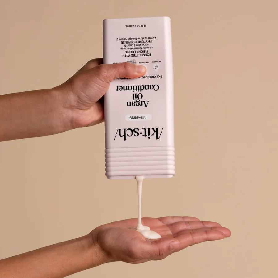 Le Kitsch Repairing Argan Oil Conditioner est ton arme secrète pour des cheveux soyeux et sans frisottis! Cet après-shampooing durable contient PhytoVie Defense pour réparer les cheveux abîmés et Fision EcoSil pour une brillance magnifique et une meilleure maniabilité. La formule est riche en huile d’argan nourrissante, qui hydrate intensément tes cheveux sans les alourdir. Parfait pour les cheveux secs et surtraités qui ont besoin d’un peu d’amour supplémentaire!