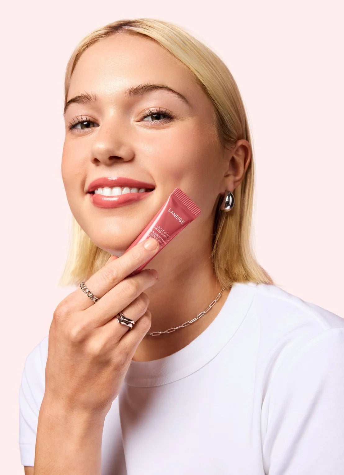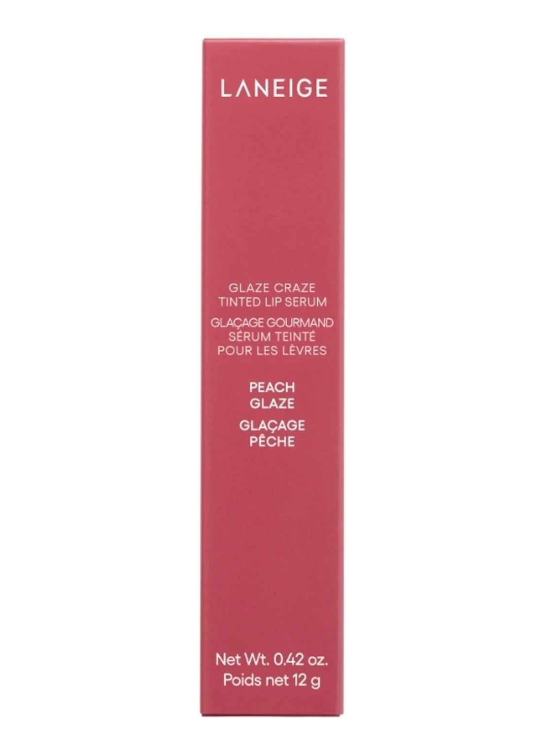 Le Laneige Glaze Craze Tinted Lip Serum en Peach Glaze est votre mélange parfait de soin et de brillance en un seul geste. Ce sérum pour les lèvres hydratant donne une teinte pêche fraîche avec une finition glossy qui fait penser à une gorgée de jus (mais encore plus mignon). La formule contient 95 % d’ingrédients issus du soin et s’applique comme un sérum pour un confort absolu toute la journée.