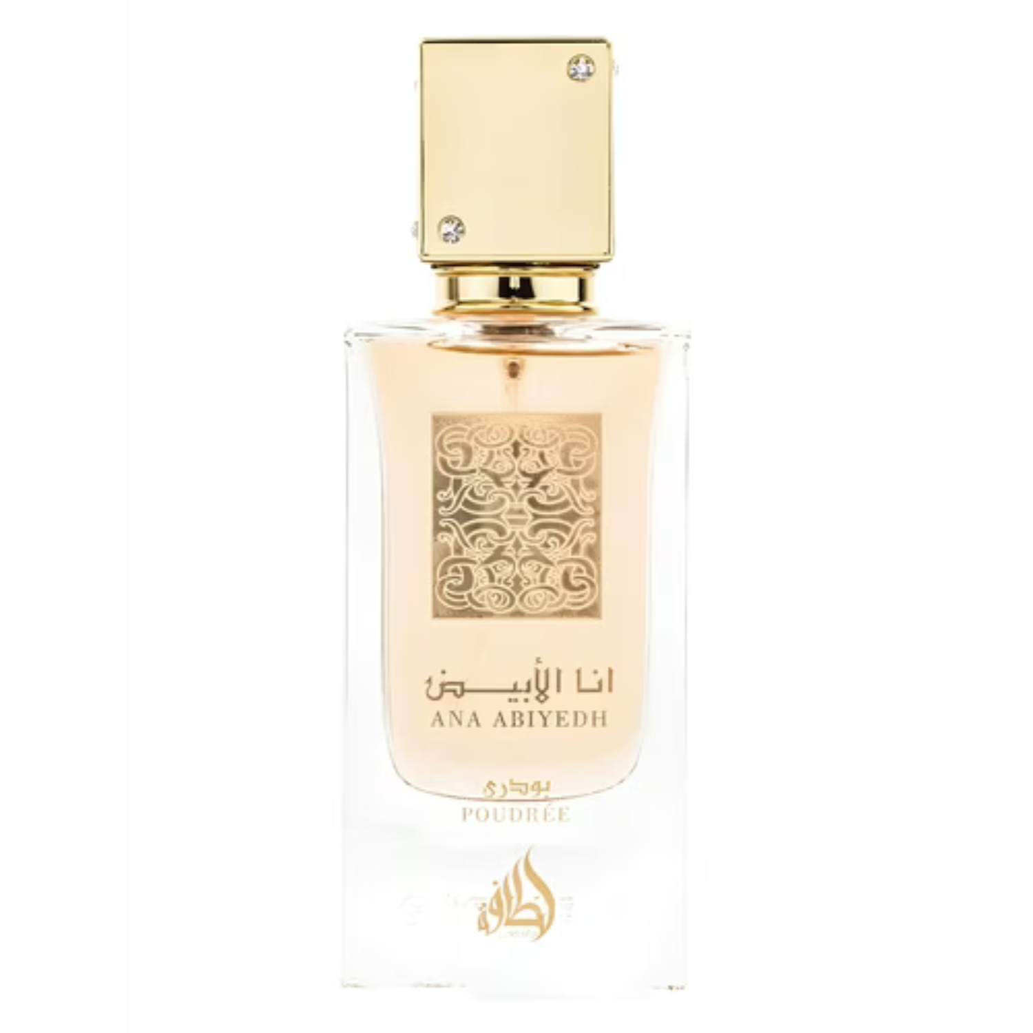 Le parfum s’ouvre de manière pétillante et légère avec des notes de poire nashi, de kumquat et de bergamote pour une touche fruitée et fraîche. En cœur, le caramel et le géranium créent un équilibre délicat entre douceur et fleurs. La base, composée d’ambre gris, de musc et de mousse de chêne, apporte une chaleur sensuelle qui reste élégamment sur la peau. Ana Abiyedh Poudrée est doux, sophistiqué et irrésistiblement raffiné, un parfum qui t’enveloppe comme une écharpe en soie luxueuse.