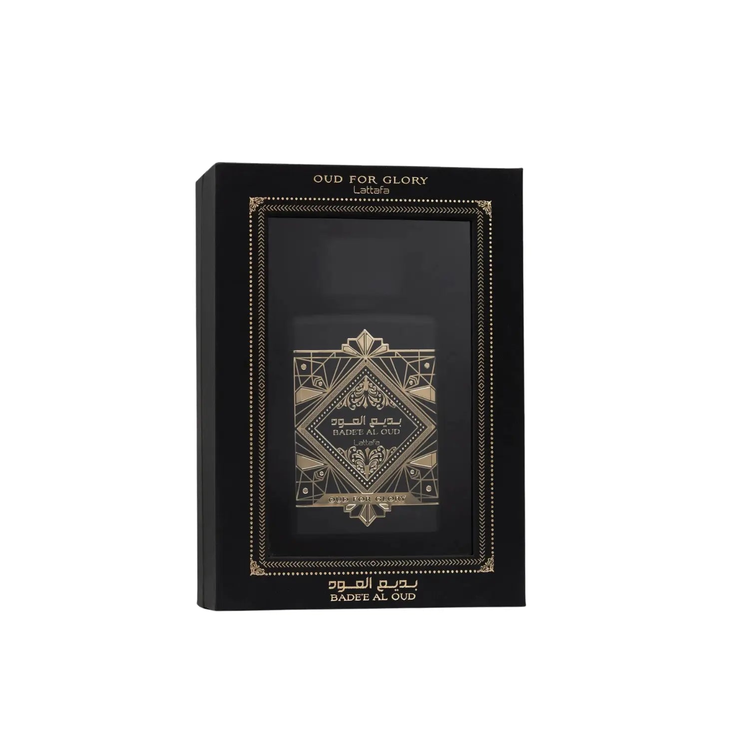 Le Lattafa Badee Al Oud for Glory Eau De Parfum est un parfum profond et puissant, plein de mystère et d'élégance. Ce parfum unisexe rend hommage à l’oud traditionnel avec une touche moderne. Il s'ouvre sur des notes épicées et intenses de safran, de muscade et une pointe de lavande, une fraîcheur inattendue qui équilibre parfaitement la chaleur à venir.