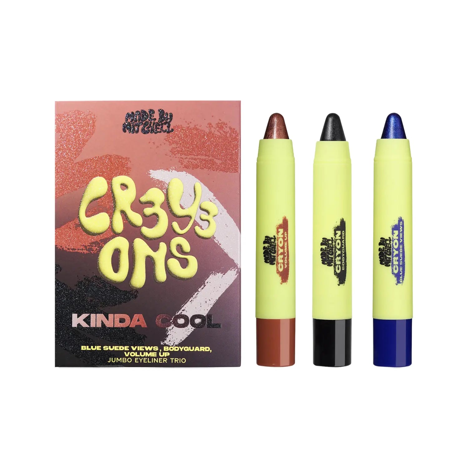 Le set Kinda Cool contient les teintes Volume Up (cuivré clair à reflet chaud), Bodyguard (noir profond classique) et Blue Suede Views (un bleu cobalt intense). Idéal pour expérimenter et apporter une touche artistique et edgy à votre look. Utilisez-les ensemble pour un regard graphique ou séparément pour une touche de couleur minimaliste.