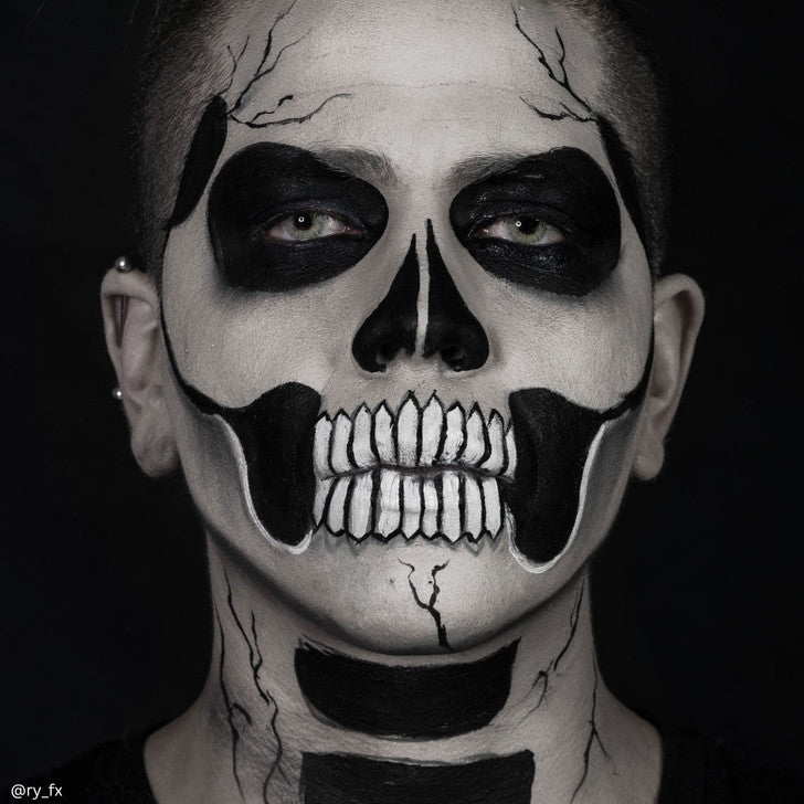 Sur l’emballage blister, vous trouverez une photo claire du look final ainsi que des instructions étape par étape pour vous guider. La texture crémeuse s’applique facilement, se fond parfaitement et offre une excellente tenue. Que vous souhaitiez un look simple ou plus détaillé, cette palette est la base parfaite pour un maquillage de squelette réussi !