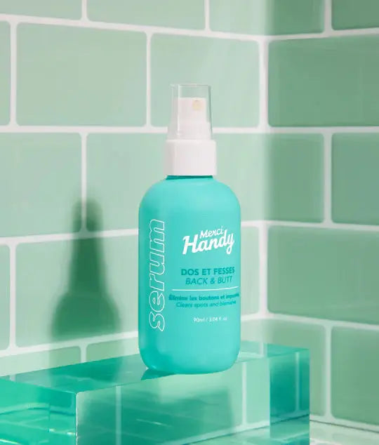 Le Merci Handy Body Serum Back & Buttocks est la solution idéale pour les zones que l'on oublie souvent, mais qui sont sujettes aux imperfections : le dos, les fesses, les épaules et le décolleté. Ce sérum clarifiant à la formule clean a été spécialement conçu pour traiter les boutons, les irrégularités et les impuretés tout en rééquilibrant la peau.