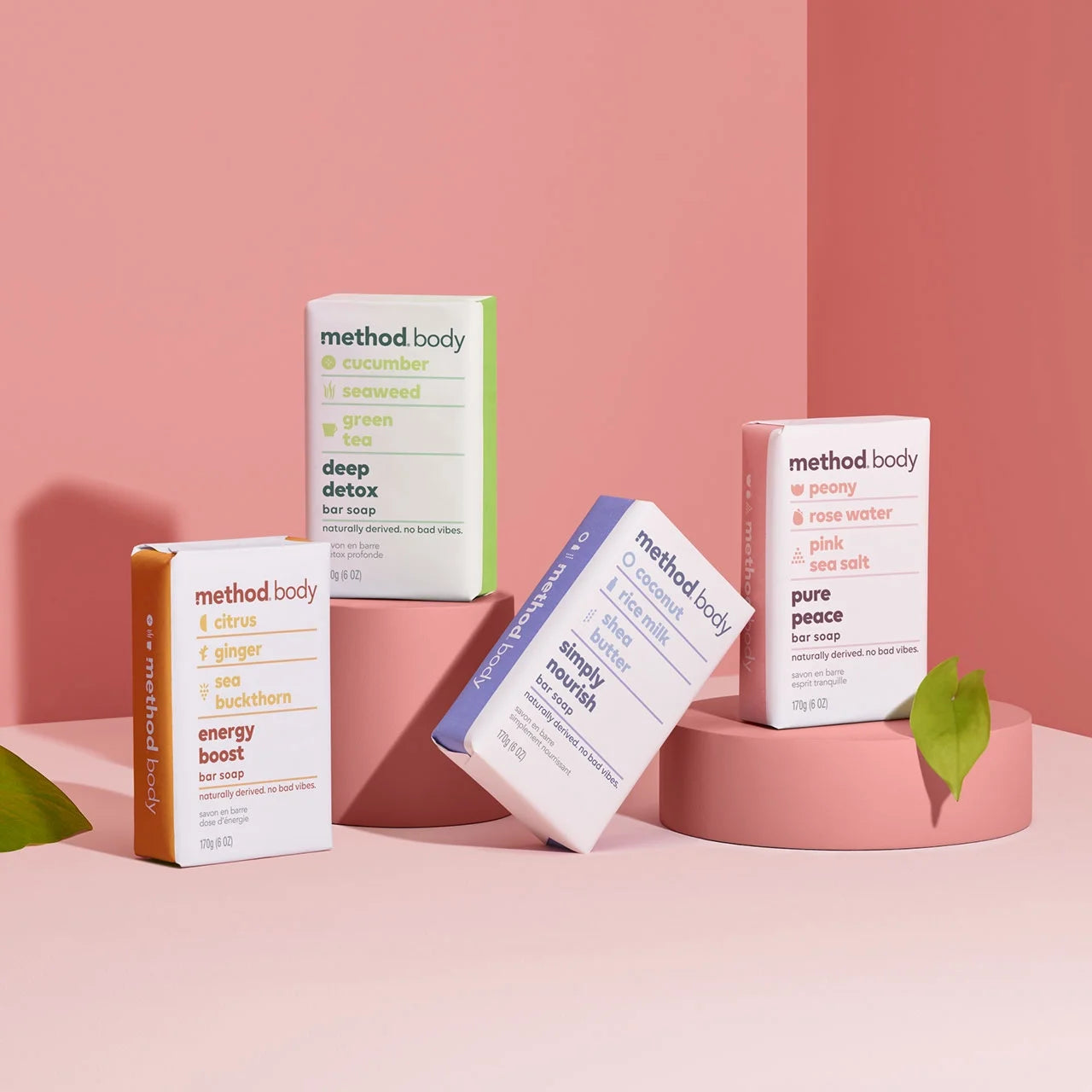 La Method Body Pure Peace Bar Soap est ton moment de calme au cœur d’une journée bien remplie. Cette bar soap nettoie la peau en douceur et t’enveloppe du parfum onirique Pure Peace, aux notes délicates de rose water, peonies et d’une touche de sea salt.
