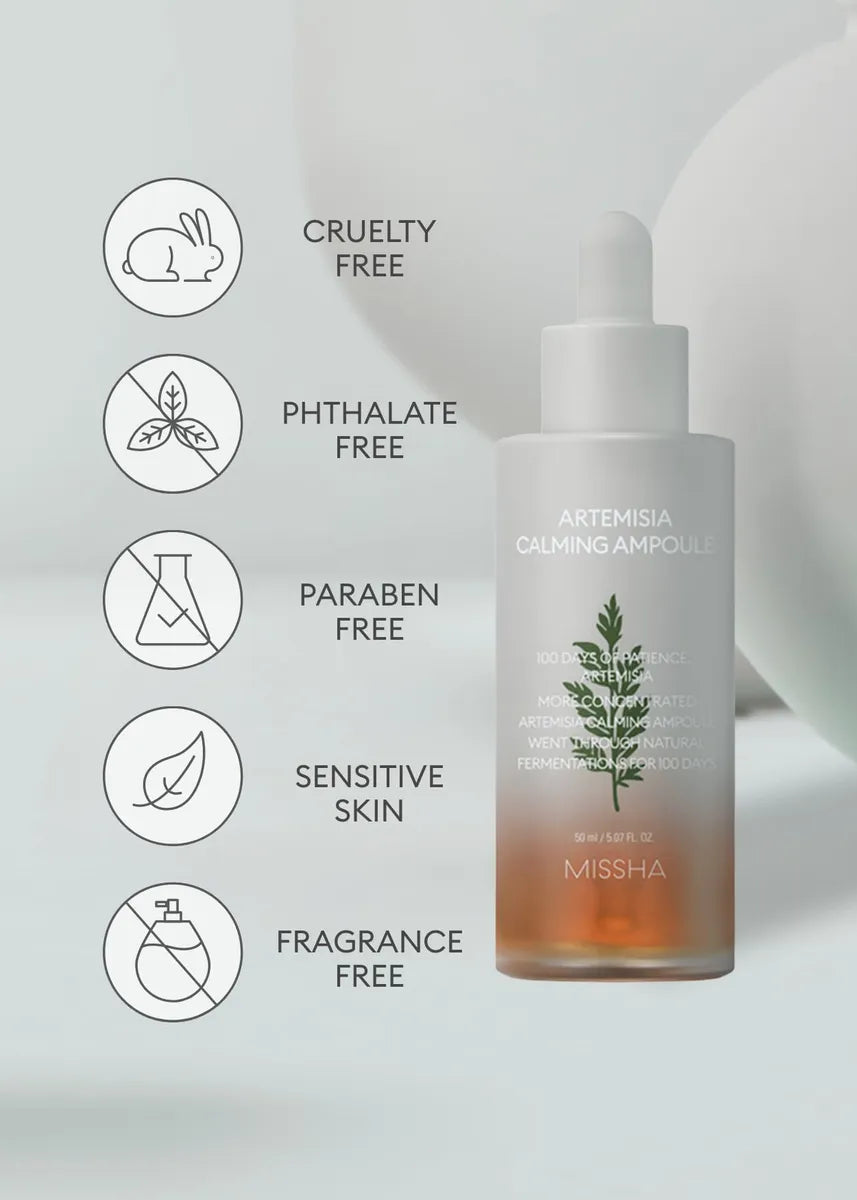 Le Missha Artemisia Calming Ampoule est un incontournable pour les peaux sensibles, facilement irritées ou déséquilibrées. Ce best-seller coréen contient une forte concentration d'extrait d'Artemisia Annua doublement fermenté (également appelé armoise), cultivé avec soin sur l'île de Ganghwa: célèbre pour sa nature pure et son sol riche.