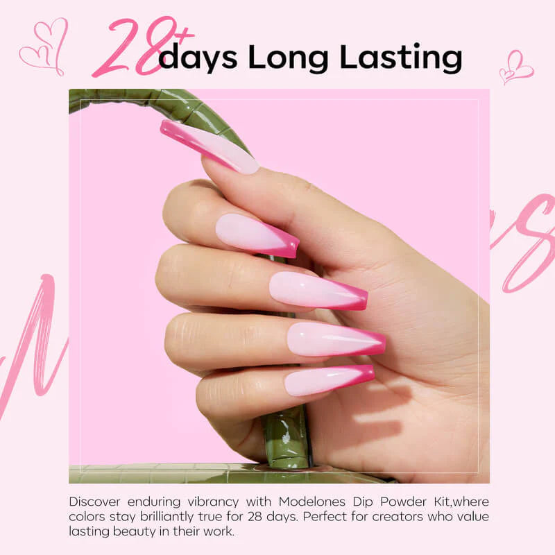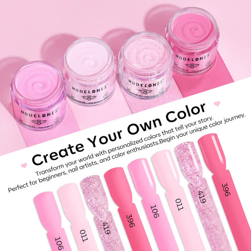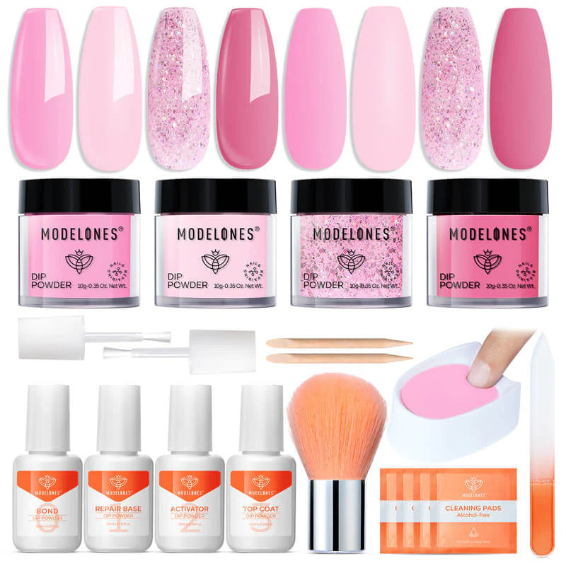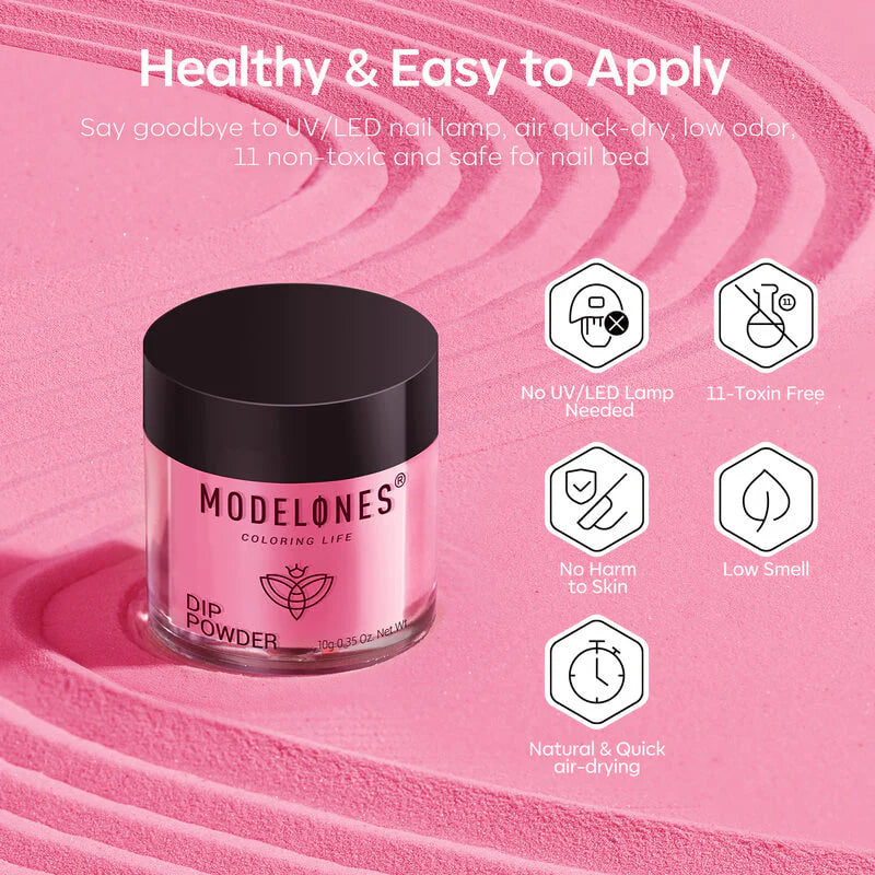 Le All-In-One Dip Powder Kit Pick Me de Modelones est votre nouveau favori pour des ongles roses parfaits avec une touche ludique ! Ce kit complet contient 4 magnifiques poudres dip dans différentes teintes de rose: du doux et romantique à une version pailletée qui apporte une touche d’éclat supplémentaire à vos ongles. À porter seul ou à combiner pour un nail art de rêve: ce kit est toujours une bonne idée.