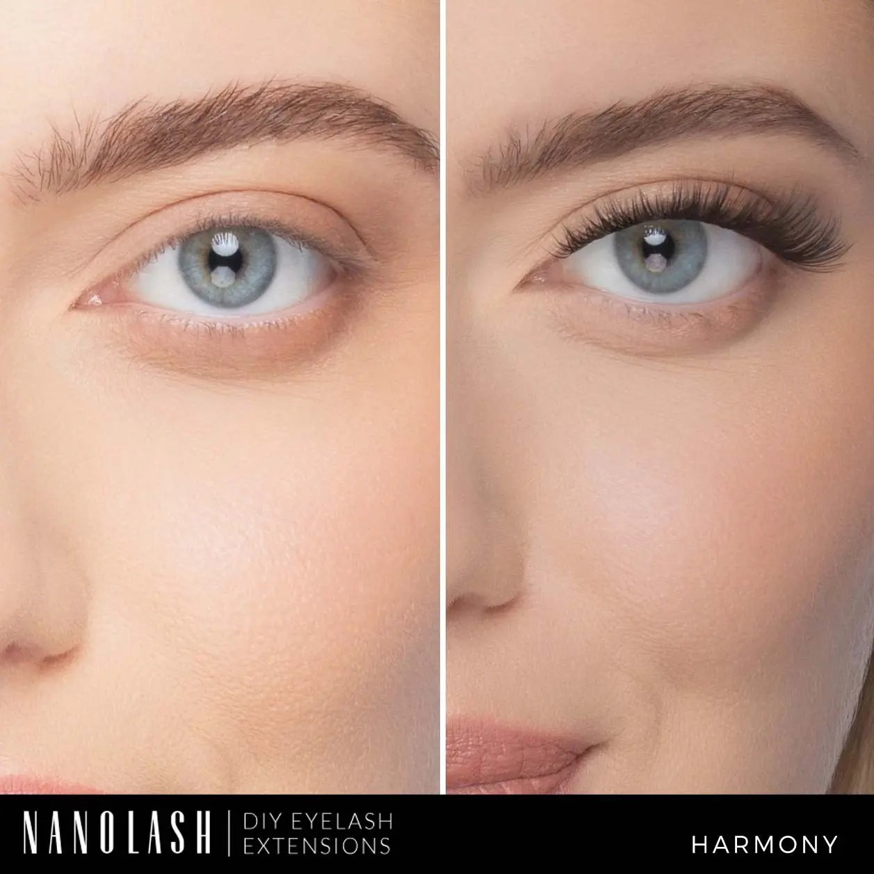 Les Nanolash DIY Eyelash Extensions Harmony sont ta solution express pour des cils dignes d’un salon: directement depuis ta salle de bain, en seulement 10 minutes ! Ces magnifiques cils en grappes sont parfaits pour celles qui aiment un look doux et naturel avec une touche de glamour. Chaque boîte contient 36 grappes ultra légères de différentes longueurs, pour un look discret au quotidien ou une finition plus intense. C’est toi qui choisis le style !