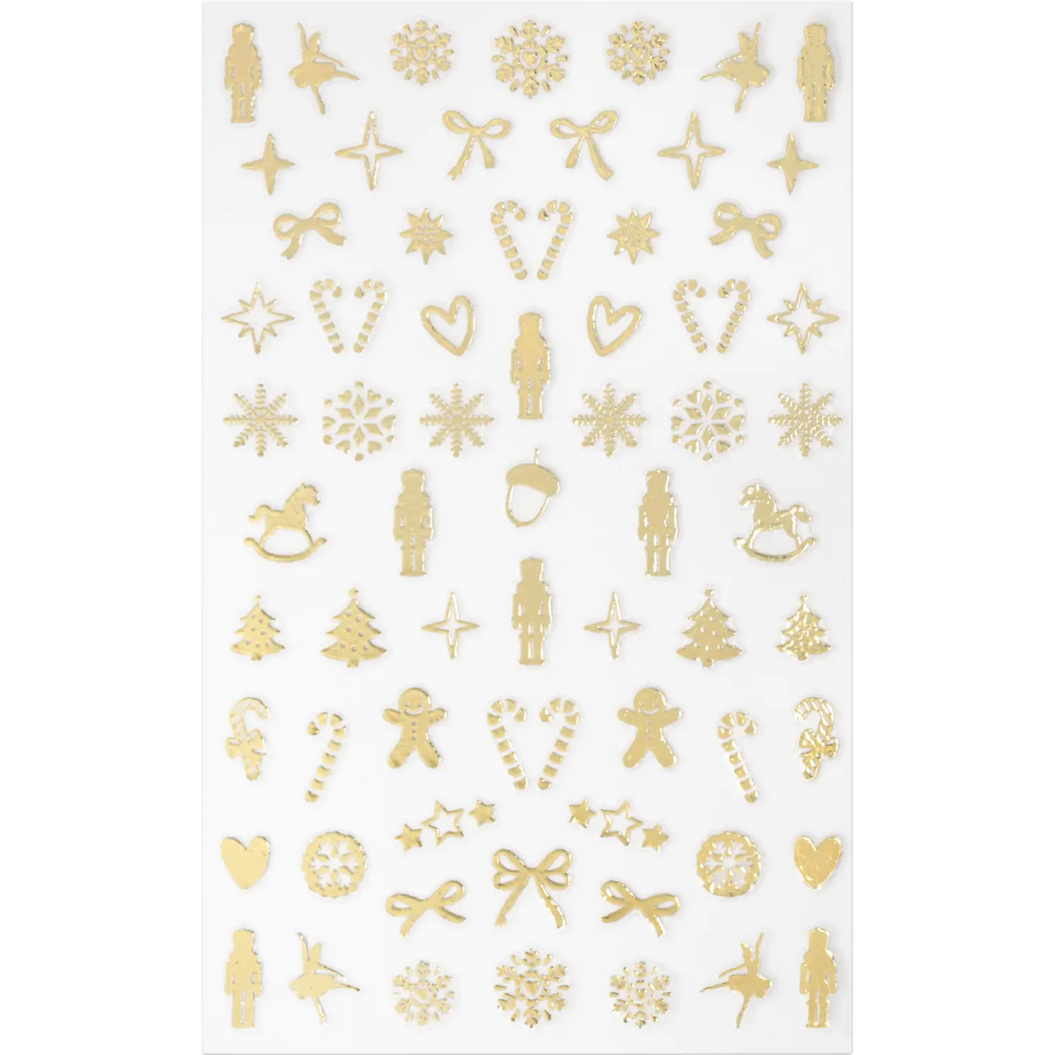 Les Essence Nuts About You Nail Sticker 01 Totally Nuts About You apportent une touche magique instantanée à vos ongles pour les fêtes. Ce set contient pas moins de 66 adorables stickers dorés brillants, avec des motifs tels que flocons de neige, étoiles, cannes en sucre, ballerines et bien sûr le célèbre casse-noisette. Parfait pour celles et ceux qui aiment soigner les détails avec une touche festive.