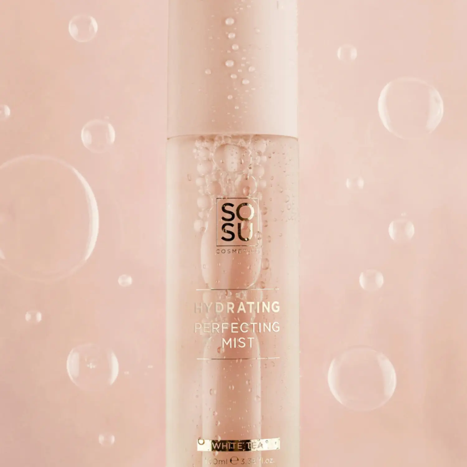 La SOSU Cosmetics Perfecting Mist Mint Tea est ton boost beauté tout-en-un dans un spray frais et brumeux. Que tu prépares ta peau au maquillage, fixes ton look ou que tu aies simplement besoin d’un coup de frais : cette brume fait tout cela, avec un parfum délicieux de thé blanc et de menthe. Ta peau est instantanément fraîche, hydratée et éclatante: sans effet collant.