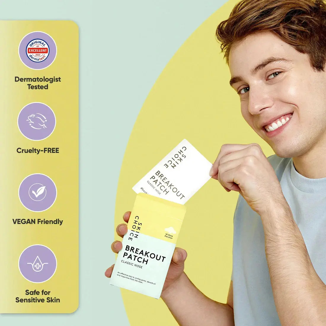 Le Skin Choice Breakout Patch Classic Nose Pack Of 10 est une solution douce mais efficace pour une zone T propre sans tracas. Ce patch nasal en hydrocolloïde flexible est une alternative respectueuse de la peau aux strips classiques et élimine l'excès de sébum et les impuretés sans tirer ni irriter.