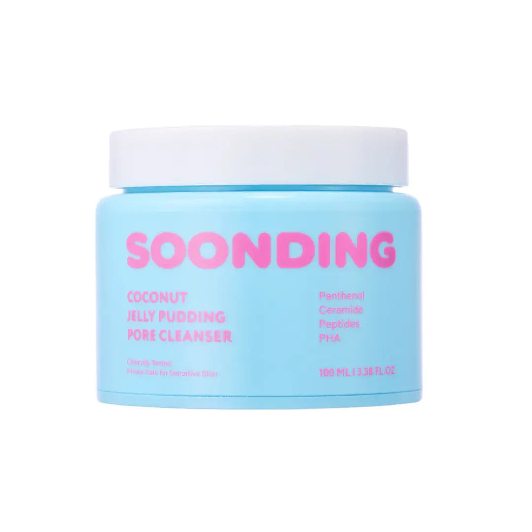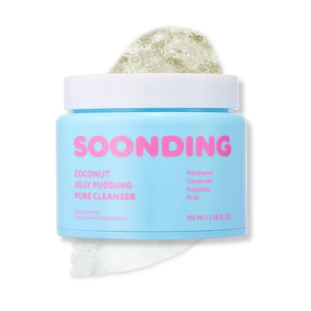 Le Soonding Coconut Jelly Pudding Pore Cleanser rend ta routine de nettoyage plus fun que jamais ! Cette gelée rebondissante se transforme au contact de la peau en une mousse riche qui élimine facilement le maquillage, la crème solaire et les impuretés. Un nettoyant 2-en-1 qui démaquille et nettoie en profondeur tout en hydratant grâce à l’eau de coco apaisante.