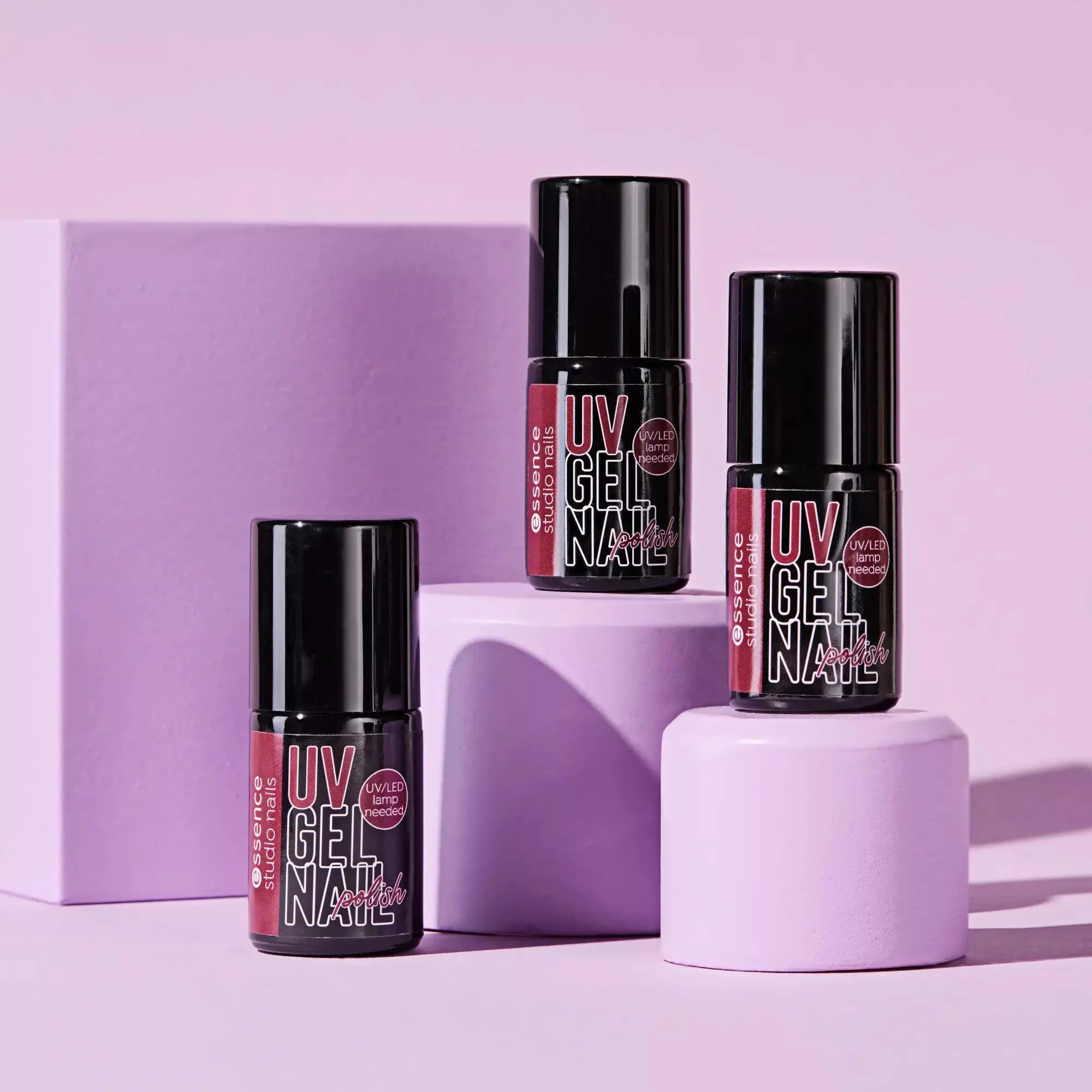 Use this polish as step 2 of Essence’s 3-step UV manicure system. Apply a thin layer, cure under a UV or LED lamp (36W), and repeat for a more intense colour. The result is a glossy, strong finish that lasts for days. Ideal if you do not want to touch up your nails every day. Combine with the matching base and top coat from the Studio Nails line for best results.