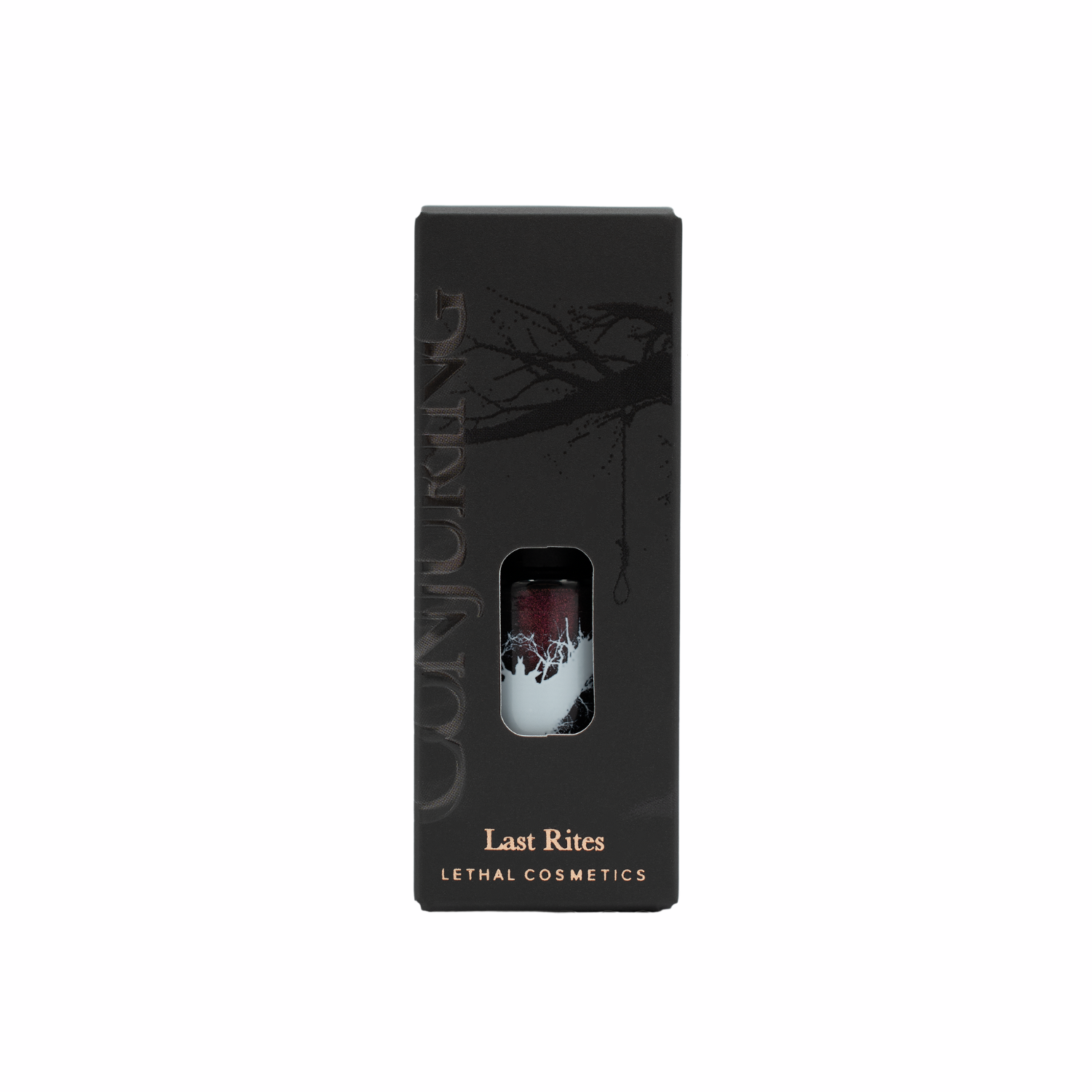 Le Lethal Cosmetics The Conjuring Nail Polish Last Rites est sombre, dramatique et absolument irrésistible. Ce vernis blackened red to copper chrome respire le glamour hanté comme si tes doigts sortaient tout droit d’une séance spirite. La couleur varie à la lumière, passant d’un rouge sang profond à un cuivre chaud, avec une finition brillante presque surnaturelle.