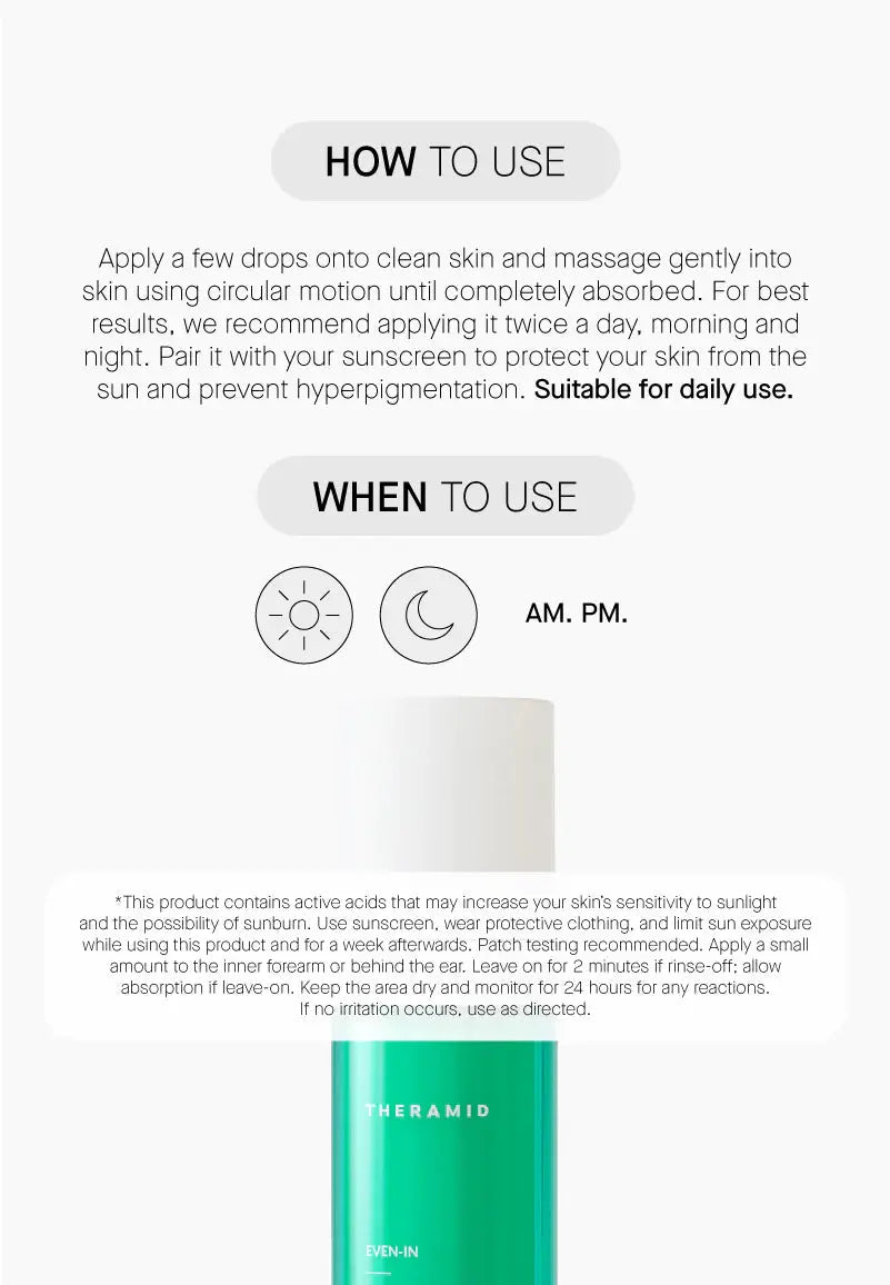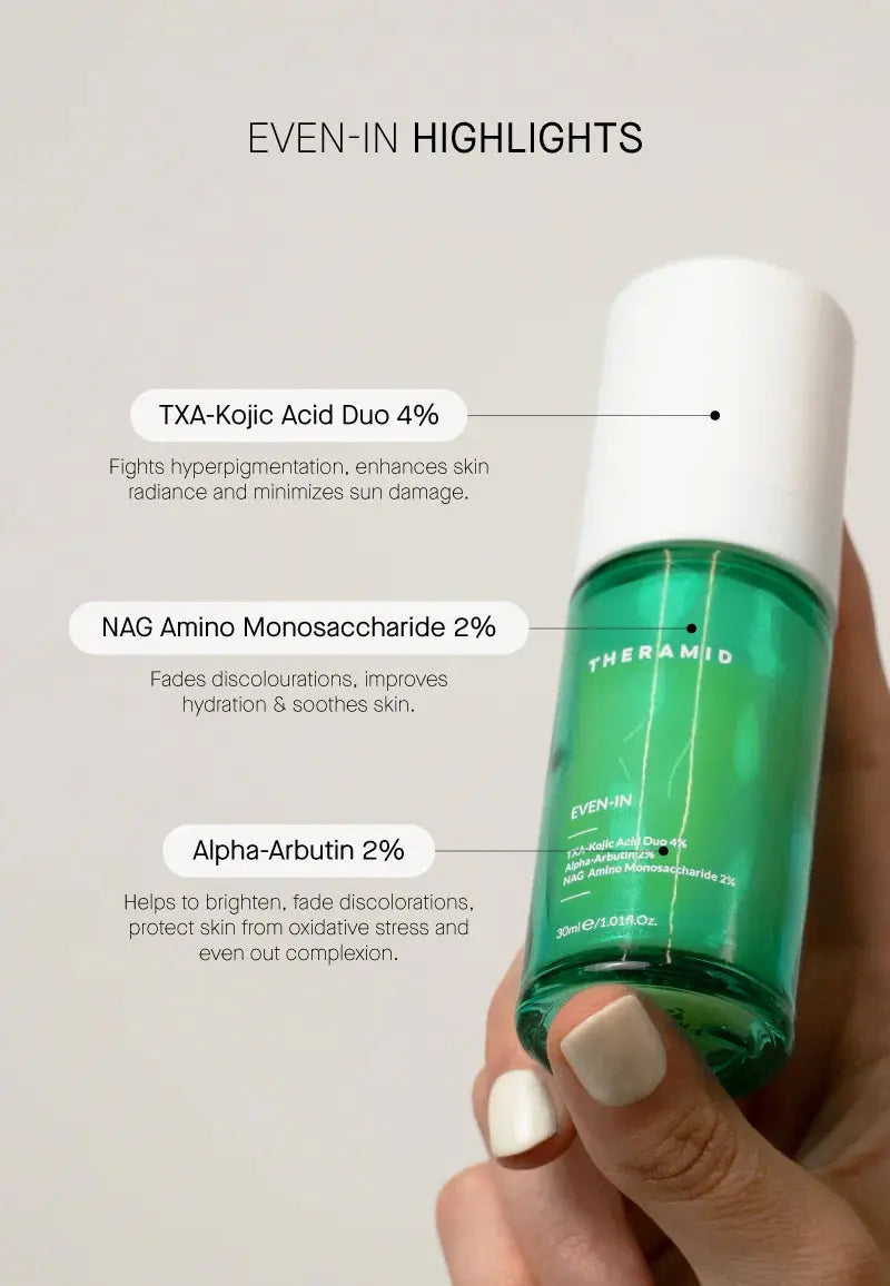 Le Theramid Even In Advanced Anti Spot Treatment est un véritable sauveur si vous souffrez de pores dilatés ou de déshydratation cutanée. Cette ampoule en spray apporte immédiatement un boost d’hydratation et, à long terme, aide également à raffermir la peau, bonjour teint lisse !