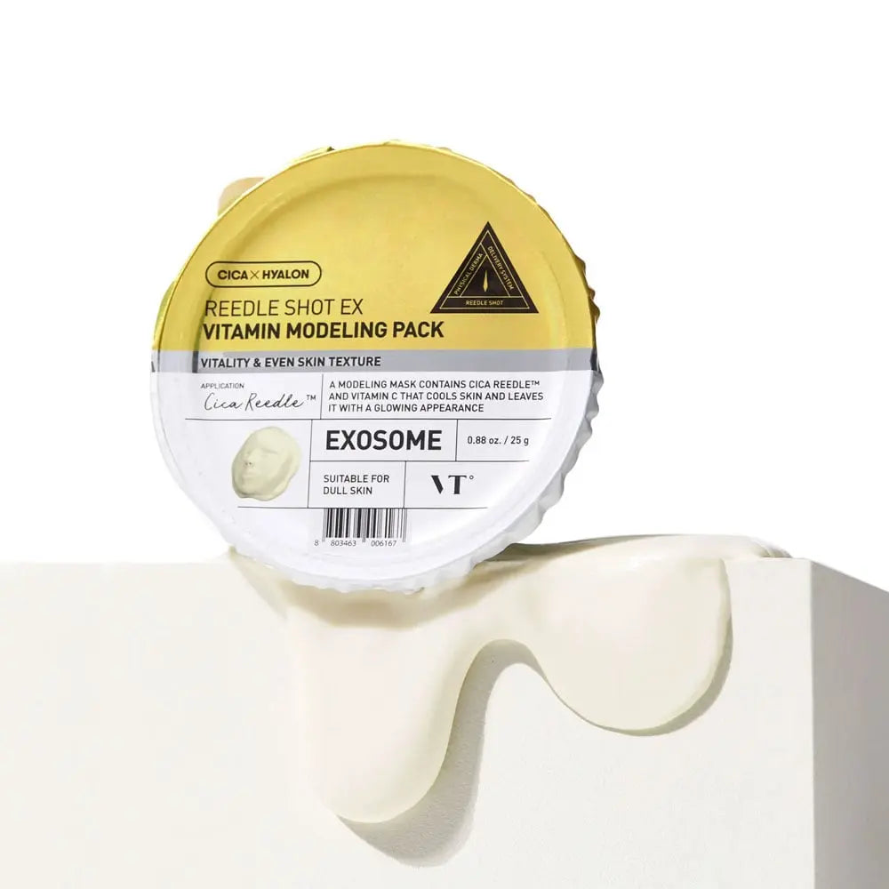 Le VT Cosmetics Reedle Shot EX Vitamin Modeling Pack est le secret de soin pour une peau fraîche, uniforme et éclatante. Ce masque alginate de luxe associe la puissance du Cica Reedle™ et de la vitamine C pour illuminer, hydrater et affiner visiblement la texture de la peau. Idéal pour les peaux ternes, fatiguées ou matures qui ont besoin d’un coup d’éclat ! Sa formule peel-off unique permet une absorption intensive des actifs et laisse la peau douce et lumineuse.