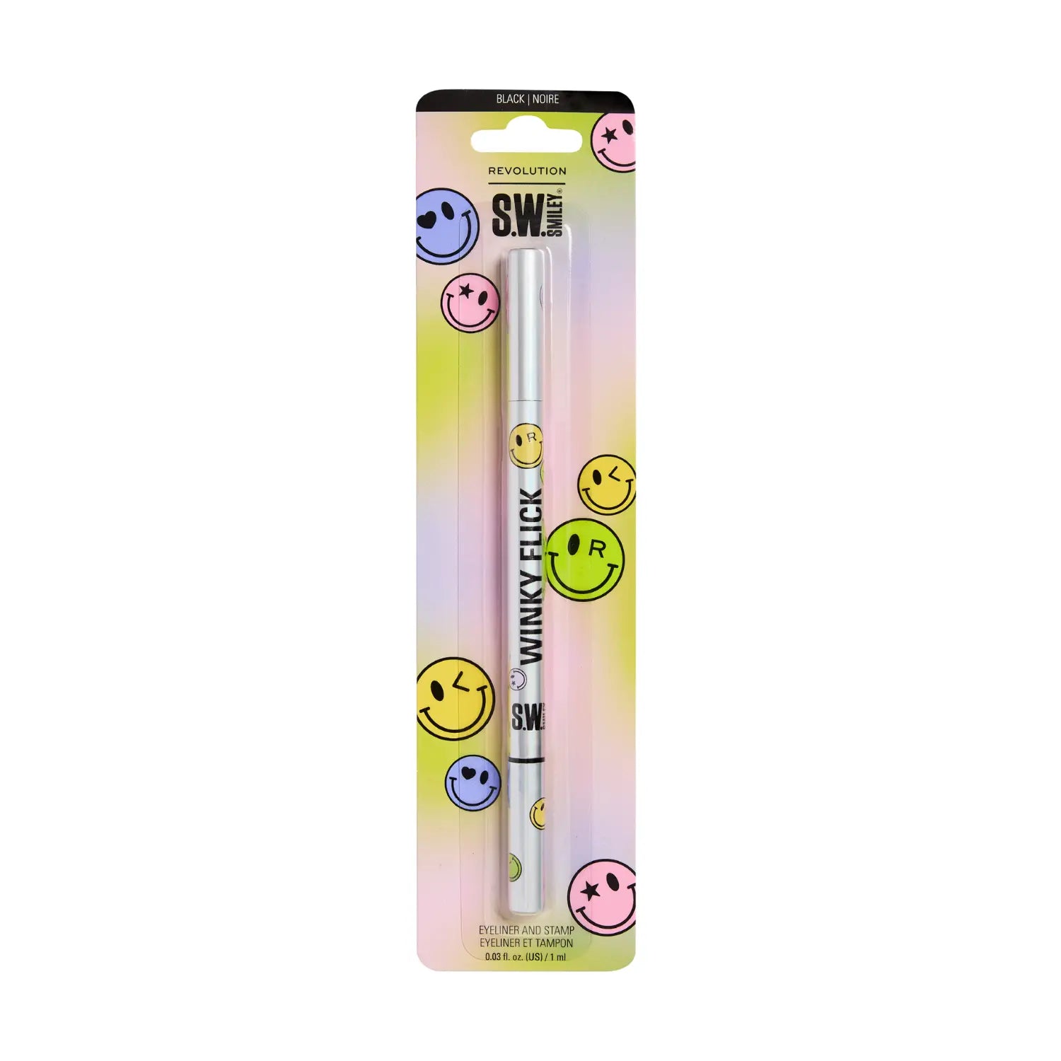 Le Revolution x S.W.Smiley Winky Flick Double-Ended Eyeliner est parfait si tu aimes les lignes nettes et les détails ludiques dans un seul produit. D’un côté, tu retrouves un eyeliner noir intense qui glisse facilement sur la peau et offre une définition précise. Idéal pour des winged liners nets ou un regard classique et intense.
