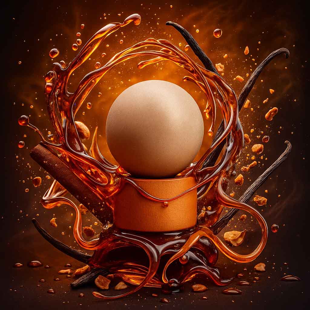 De basis van cetalox, chantilla, vanille en cederhout zorgt voor een lange, elegante finish met een subtiele houtachtige ondertoon. Deze parfum is een verfijnde keuze voor wie houdt van rijke, gourmand parfums die opvallen zonder te overheersen.