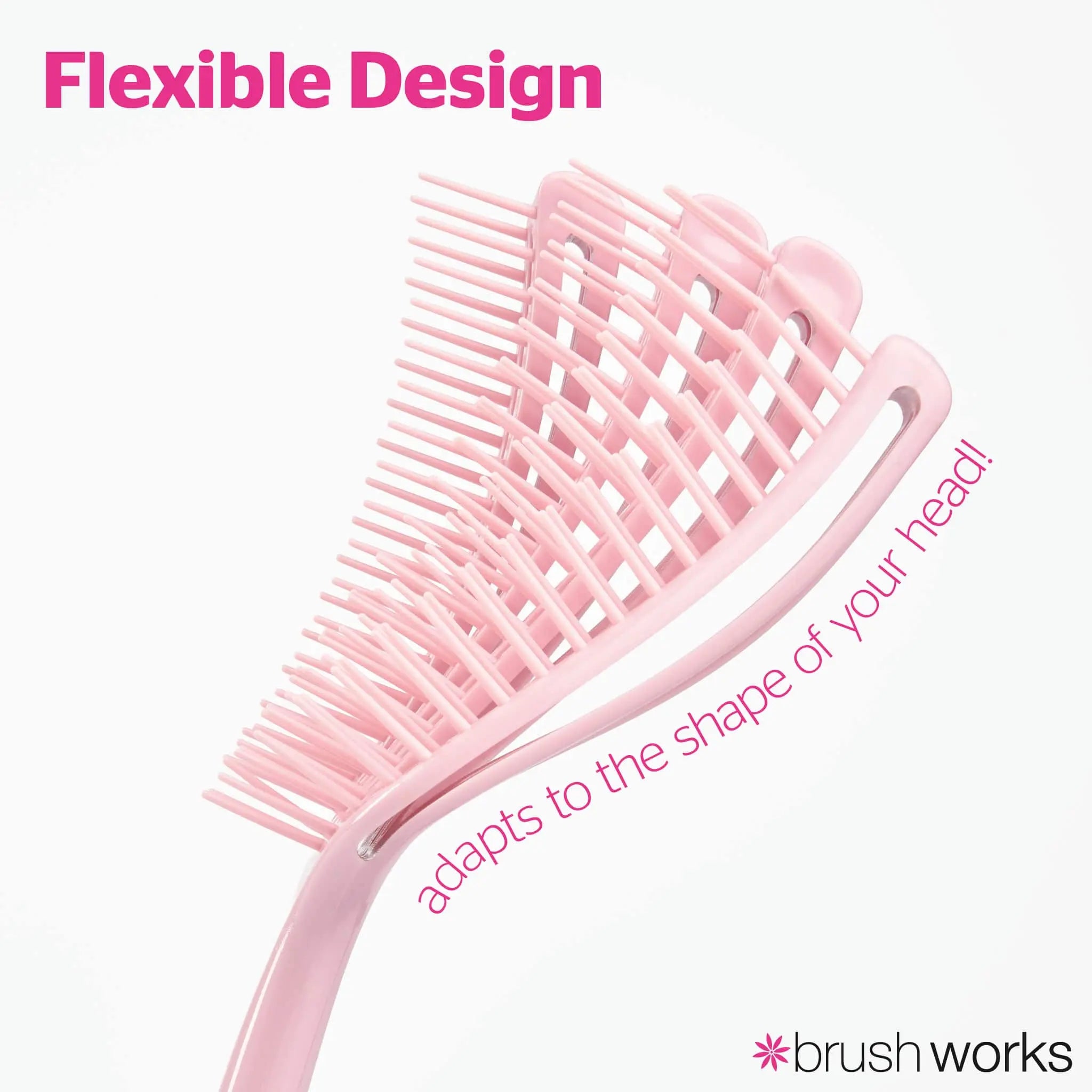 Het flexibele, ergonomische design vormt zich naar je hoofdhuid voor extra comfort tijdens het borstelen. Ideaal voor gebruik op nat haar om conditioner gelijkmatig te verdelen of om je krullen na het wassen voorzichtig te ontwarren. De flexibele borstelharen glijden soepel door klitten en zorgen voor perfect gescheiden, gedefinieerde krullen met respect voor je textuur.