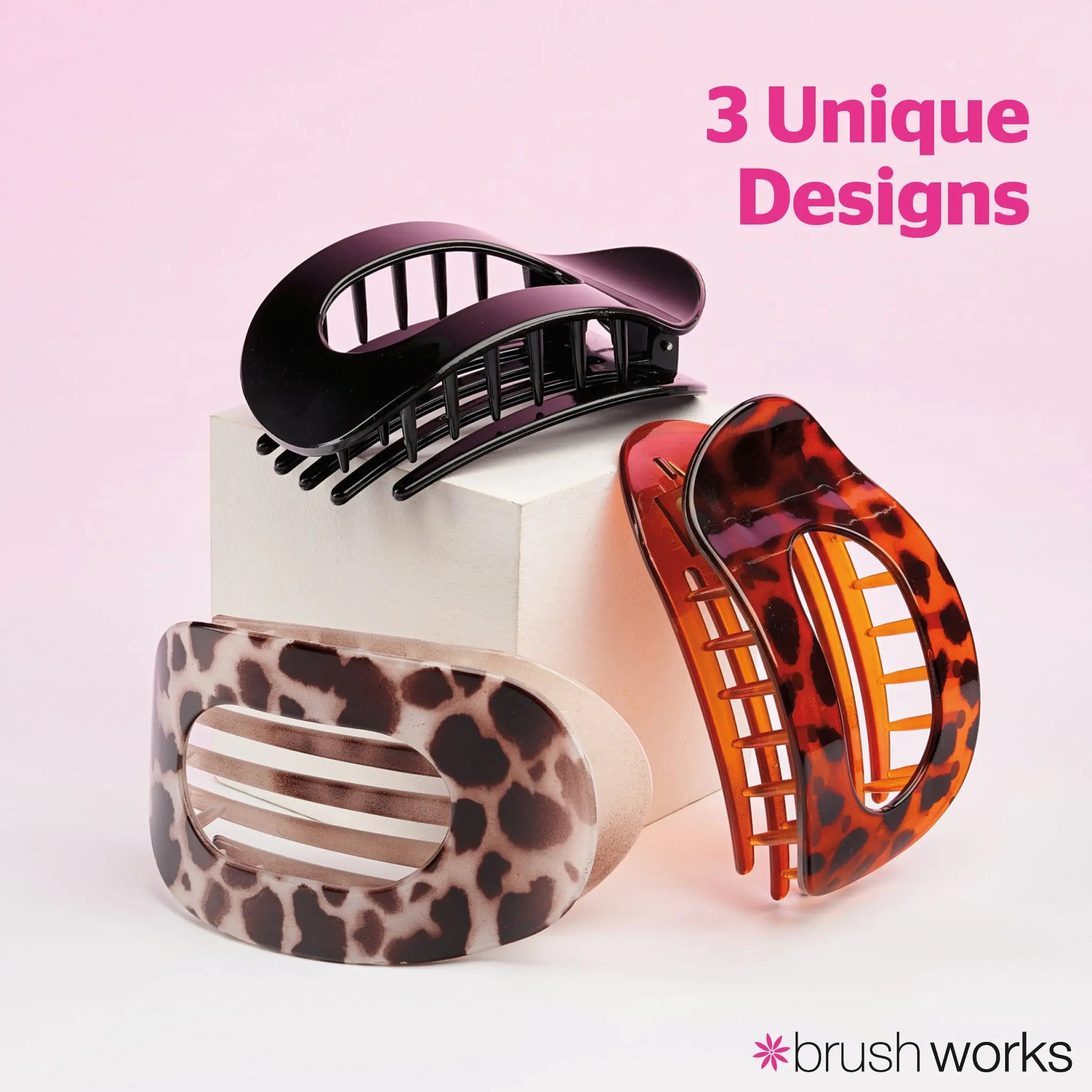 De Brushworks Flat Claw Clips zijn jouw nieuwe musthaves voor een stijlvolle én comfortabele hair look. Deze set van drie clips bevat een shiny zwarte variant en twee shiny tortoiseshell designs, perfect om elke outfit een trendy touch te geven.