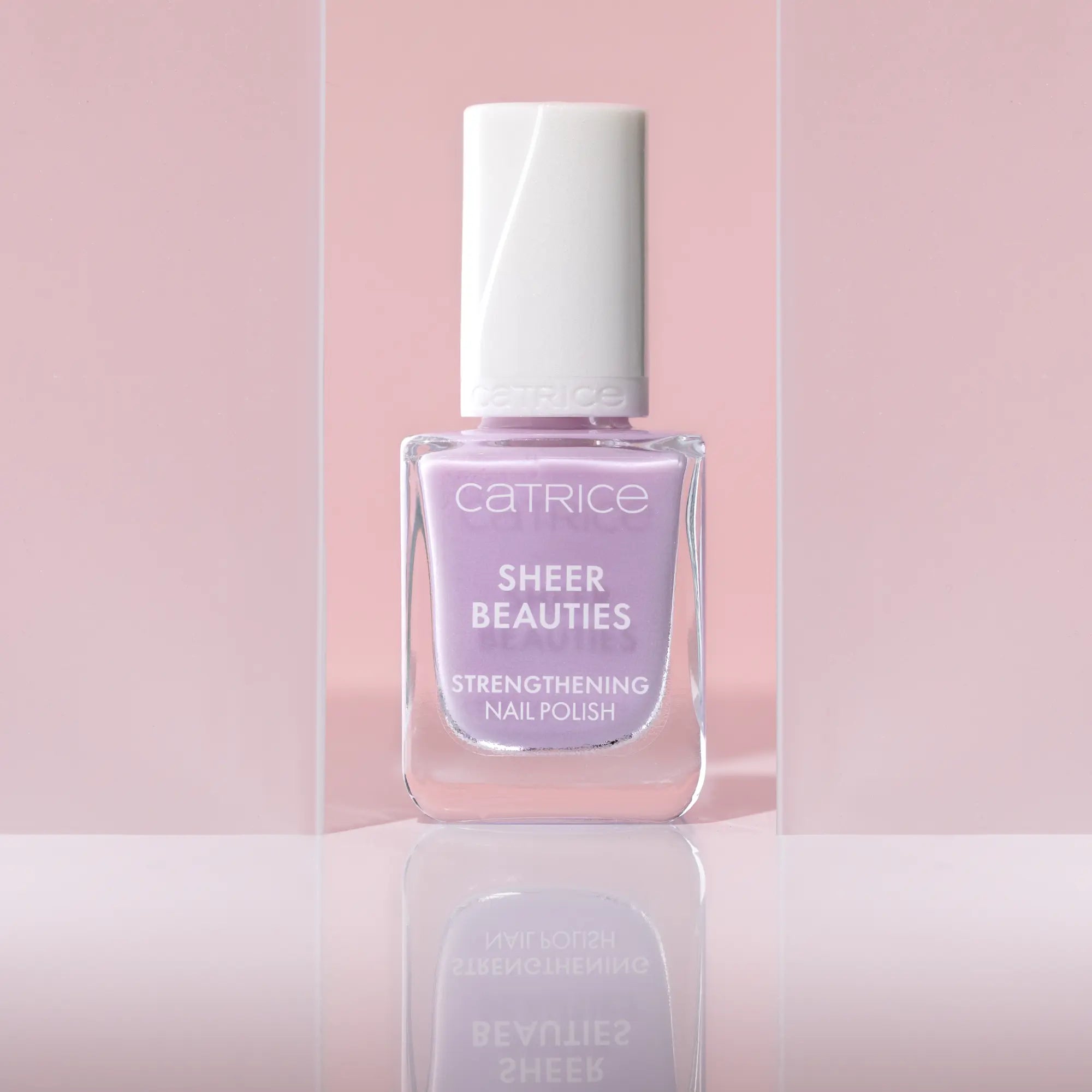 De Catrice Sheer Beauties Strengthening Nail Polish 080 Lavender Whispers is een zachte lavendelkleur die je nagels een frisse, natuurlijke uitstraling geeft. De transparante finish laat je nagels verzorgd ogen met een subtiel vleugje kleur, perfect voor de clean girl look.
