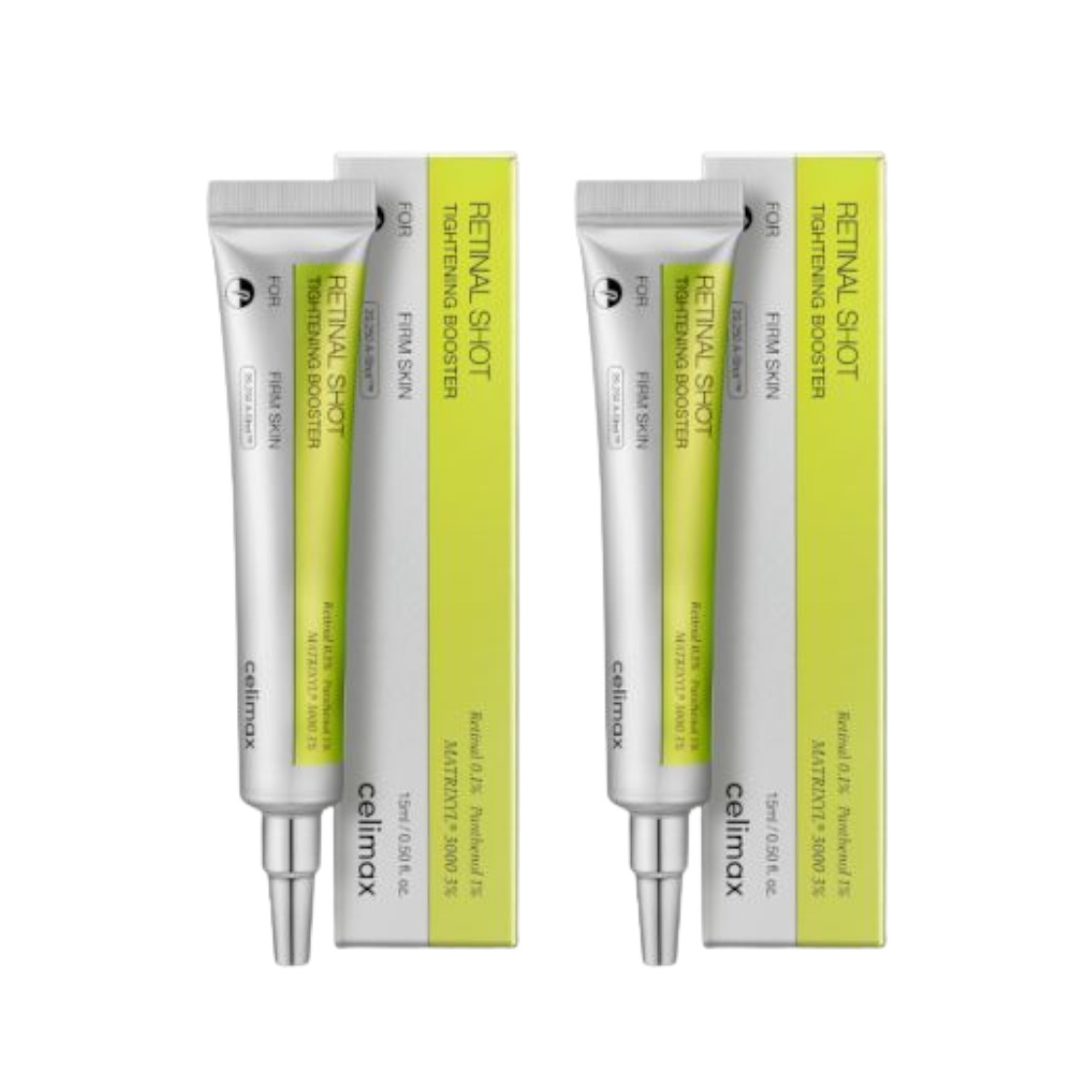 Het Celimax Retinal Booster Double Set is jouw ultieme avondroutine als je gericht aan de slag wilt met rimpels, grove poriën en een onregelmatige huidtextuur. Deze set bevat twee tubes van dezelfde krachtige formule met 0,1% retinal, een geavanceerde en effectievere vorm van retinol. Perfect om in één keer dubbel in te slaan of om er eentje op voorraad te houden.