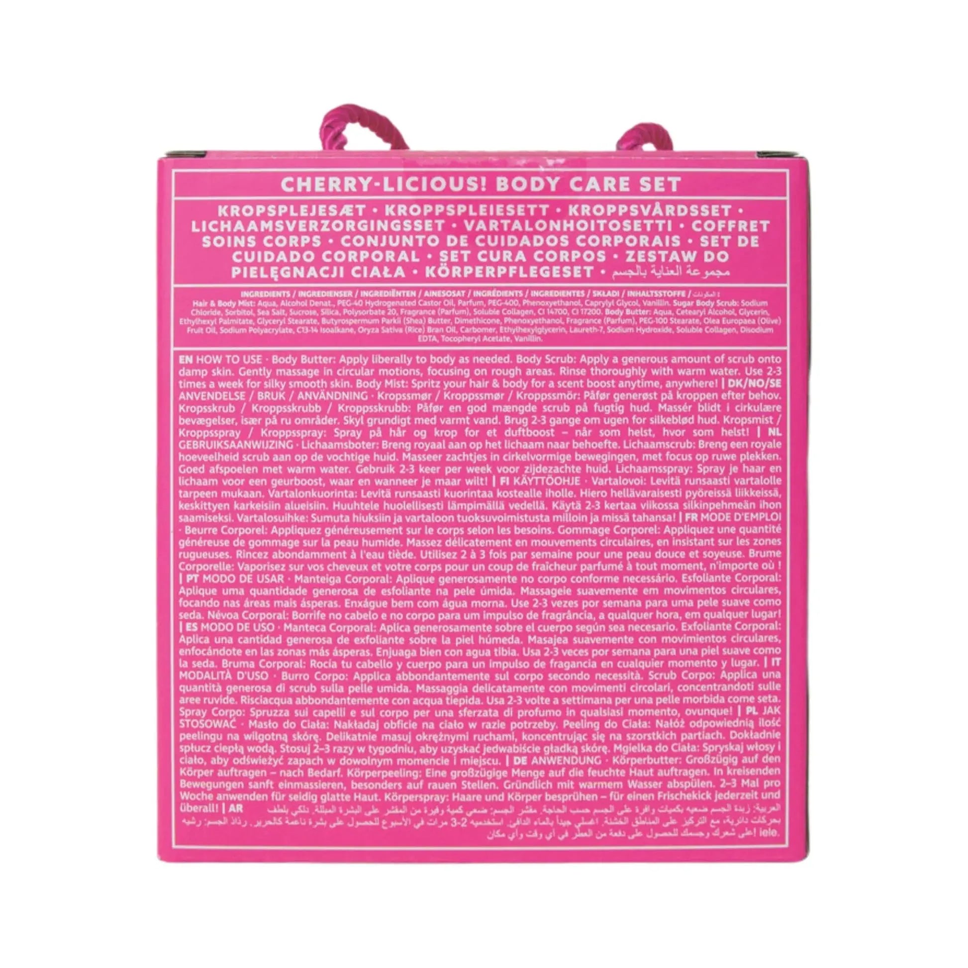 Perfect voor een pamper moment of als cadeau (ook voor jezelf). De producten in deze set verzorgen en hydrateren je huid, terwijl de zoete kersengeur zorgt voor een fun, energieke boost. Of je nu een avondje uit gaat of lekker thuis chillt: met deze set ben je altijd on point en glowing!