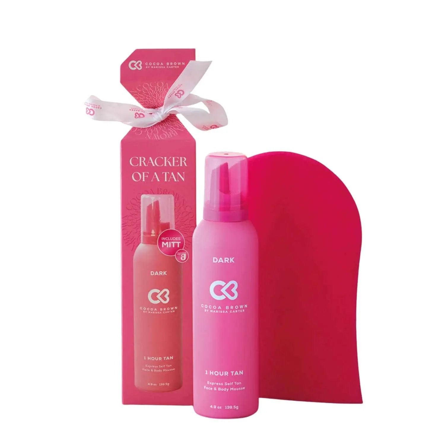De Cocoa Brown Cracker Of A Tan Dark is jouw go-to voor een diepe, bronzed glow: verpakt in een té leuke kerstcracker! In deze feestelijke set vind je de populaire Cocoa Brown 1 Hour Tan Mousse in de kleur Dark én een zachte deluxe tanning mitt. Alles wat je nodig hebt om snel en zonder gedoe een intens bruine teint te creëren.