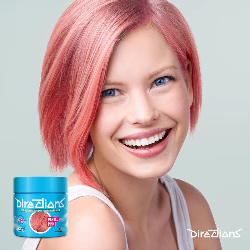 De Directions Color #Pastel Rose is een semi-permanente haarkleuring in een zachte rosétint die je haar een romantische en frisse pastelgloed geeft. Deze dromerige kleur is perfect voor wie houdt van subtiele fantasy vibes met een vleugje roze glamour.