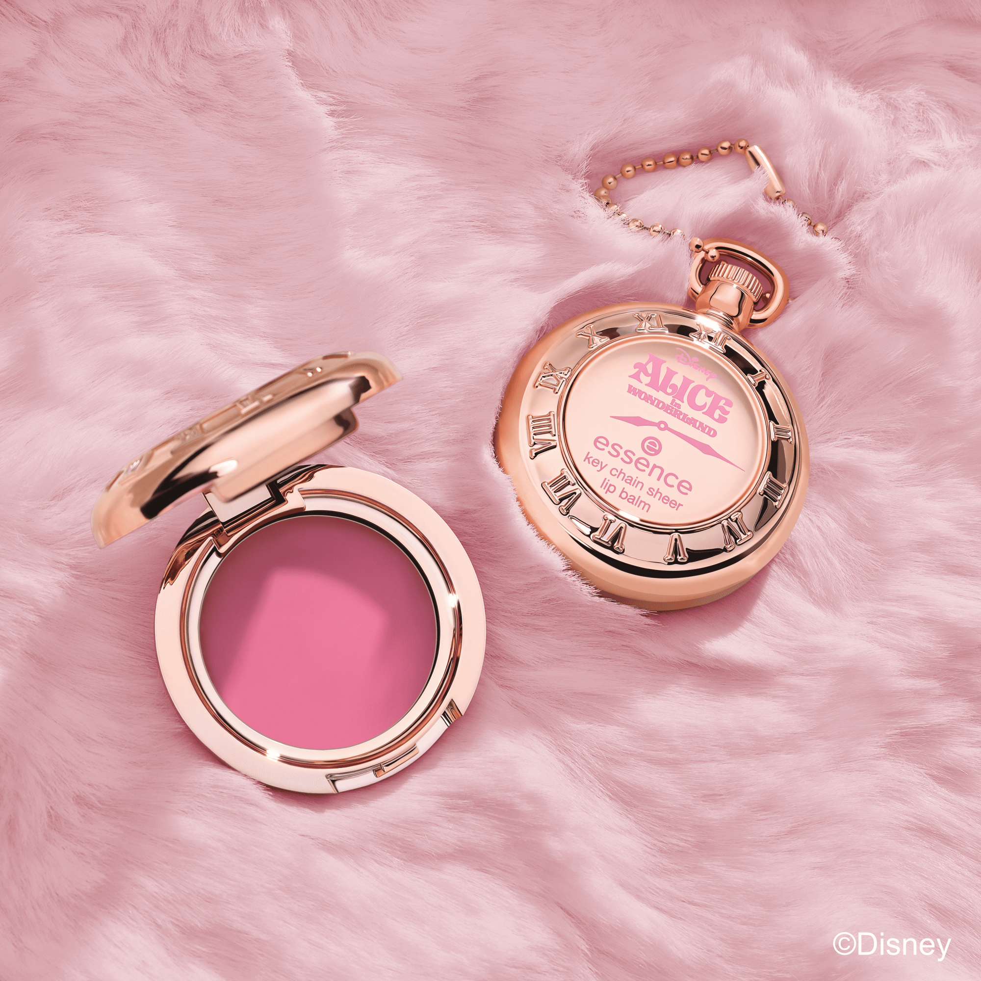 De Essence Disney Alice in Wonderland key chain sheer lip balm 02 Late But Great is jouw ultieme lip-saver voor onderweg! Deze superleuke balm in de vorm van een zakhorloge heeft een zachte, fruitige geur en geeft je lippen een subtiel roze kleurtje met een glanzende, dewy finish.