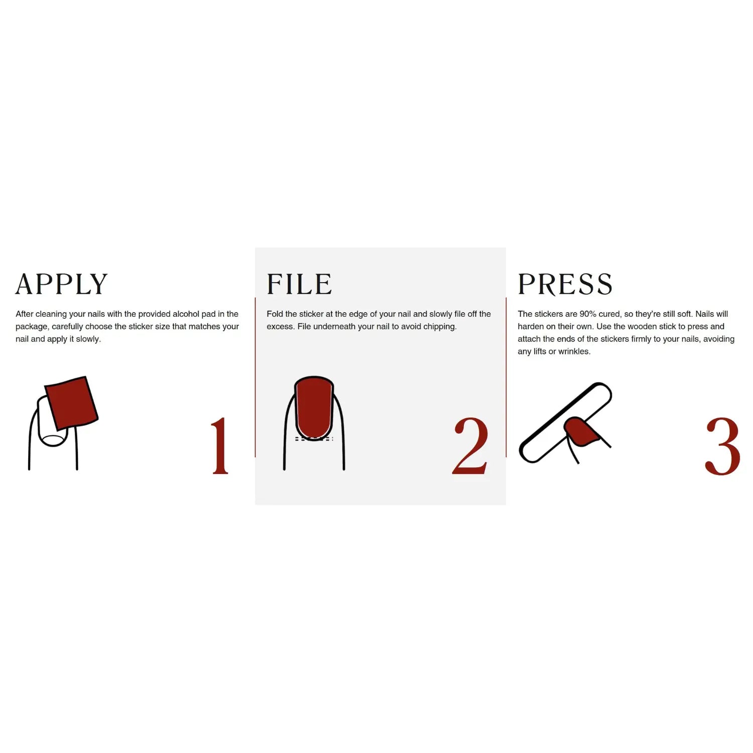 - Breng de strips aan op je nagels en druk goed aan voor een perfecte hechting.