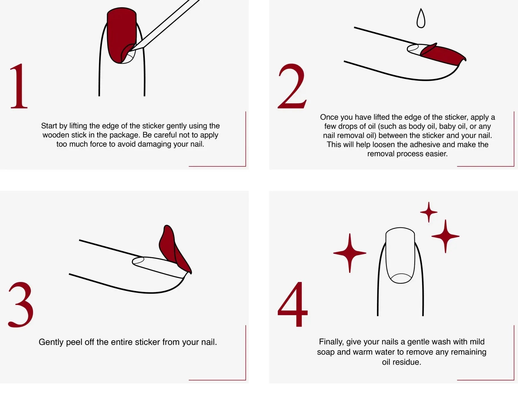 - Toe aan een nieuwe look? Druppel de Edgeu Shop Care Gel Off Serum langs de randen van de strip, laat even intrekken en verwijder voorzichtig.