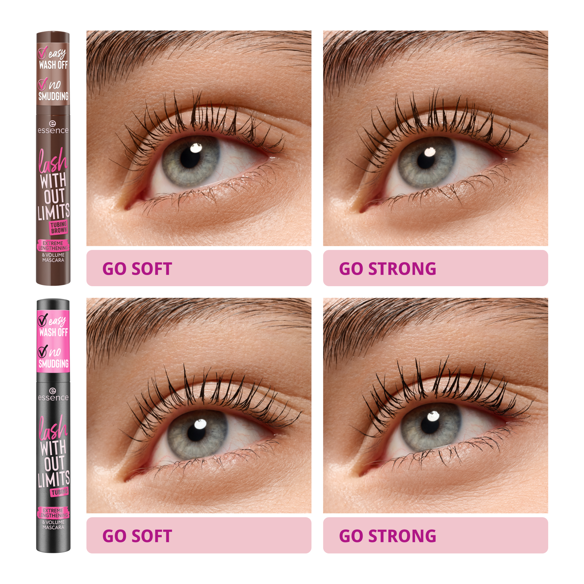 De Essence Lash Without Limits Tubing Brown Extreme Lengthening & Volume Mascara 05 Brown Tubing geeft je wimpers een mooie boost met een zachte, bruine tint. Perfect als je houdt van een natuurlijke look met extra lengte en volume. De tubing formule vormt lichte buisjes rondom elke wimper, waardoor ze langer en voller lijken zonder zwaar aan te voelen.