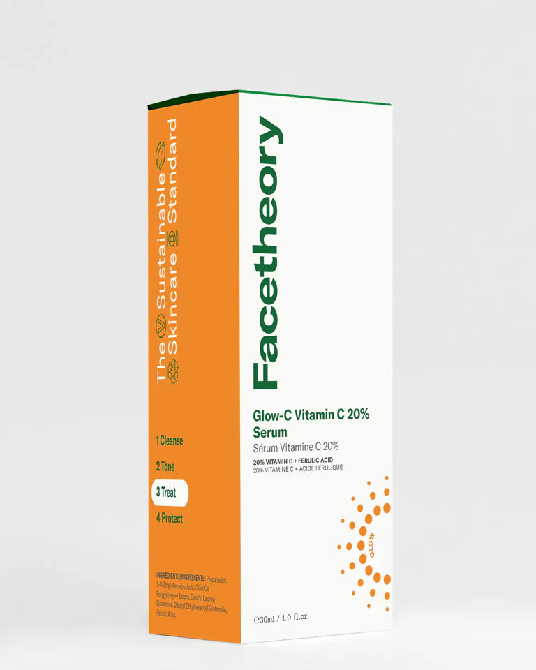 Het Facetheory Glow-C Vitamin C 20% Serum is een krachtige, maar milde booster voor iedereen die eindelijk zichtbare resultaten wil zonder irritatie. Dit serum bevat 20% ethylated vitamin C gecombineerd met ferulic acid en hydraterende glycerin. Samen zorgen ze voor een egale, stralende huid met verbeterde elasticiteit en minder zichtbare donkere vlekken.