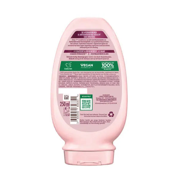 De Garnier Loving Blends Grape Moisture Conditioner is jouw go-to als je droomt van gehydrateerd, zacht en glanzend haar. Deze romige conditioner is verrijkt met druivenwater en antioxidanten uit druivenpitolie, en geeft je haar precies wat het nodig heeft: intensieve hydratatie, herstel en een natuurlijke glans, zónder te verzwaren.