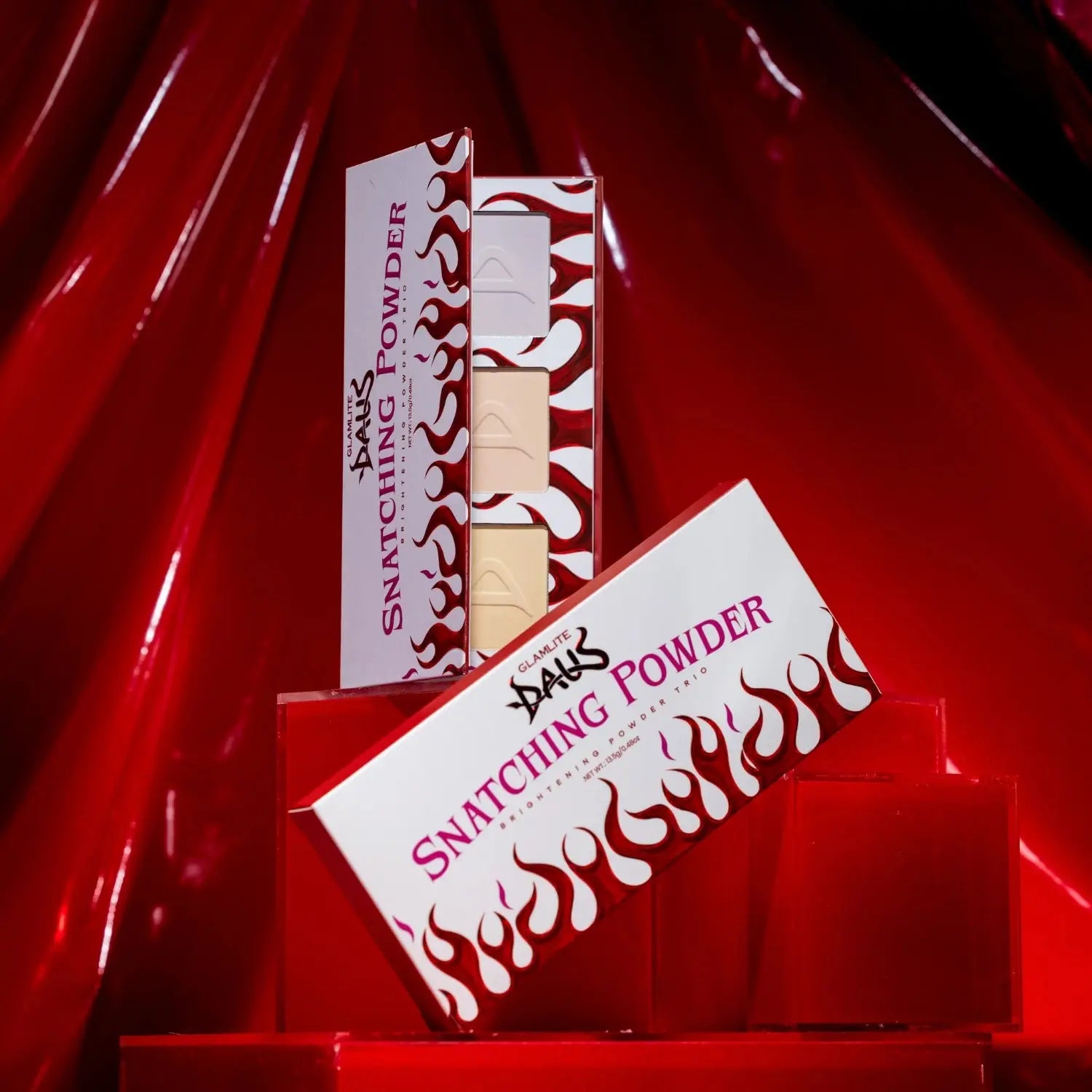 De Glamlite x Daus Snatching Powders zijn jouw geheime wapen voor een moeiteloos gesnatchte look. Deze poeders doen het allemaal: ze verhelderen, vervagen én liften in één simpele swipe. Of je nu je onderogen wilt oplichten, je contour wilt versterken of gewoon dat smooth, gefilterde effect wilt bereiken, deze poeders got you covered.