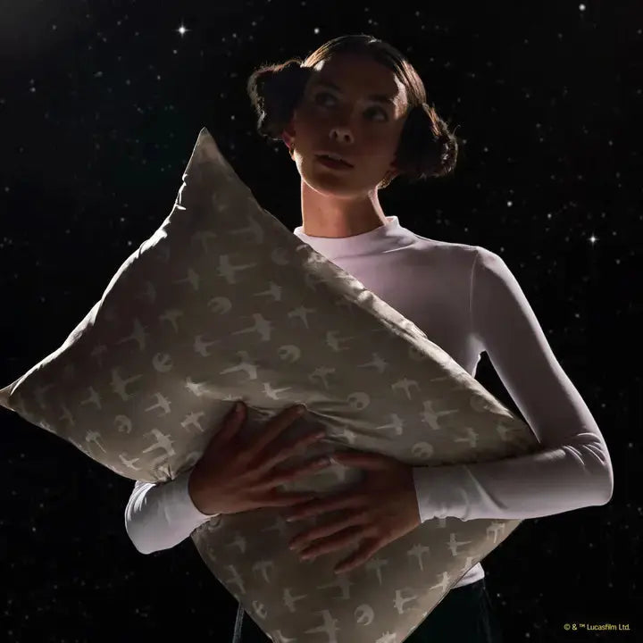 Het Kitsch Star Wars™ Satin Pillowcase Rebel Alliance is perfect voor beauty lovers die de kracht van de Force willen combineren met een zachte, huidvriendelijke nachtrust. Deze satijnen kussensloop is versierd met een subtiel all-over Rebel Alliance ontwerp in een chique gouden finish: een stijlvolle ode aan de rebellen die staan voor vrijheid, lef en… fabulous haar.