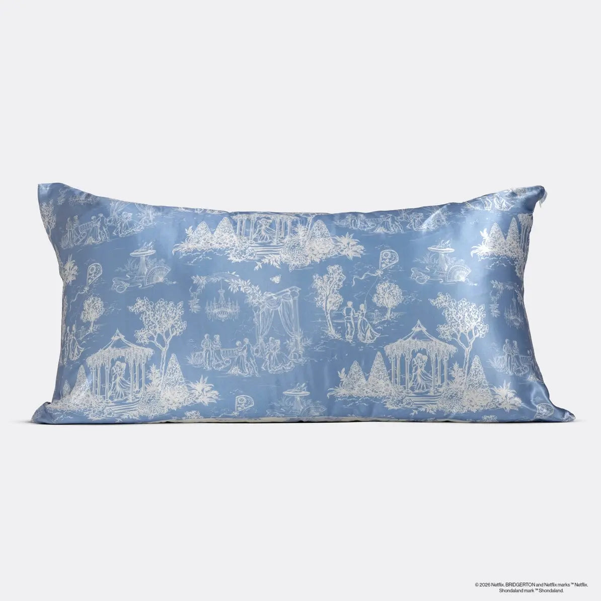 De Kitsch x Bridgerton Satin Pillowcase Garden Toile King is een elegante toevoeging aan je bed die niet alleen prachtig oogt, maar ook lief is voor je huid en haar. Met een romantische Bridgerton-toileprint aan de ene kant en een contrasterend patroon aan de andere, kun je deze kussensloop omdraaien voor een frisse, sprookjesachtige look die perfect in je slaapkamer past.