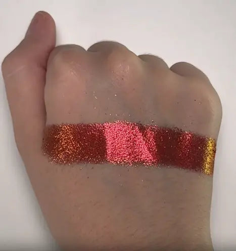 De Lethal Cosmetics Magnetic™ Pressed Multichrome Shadow Aldebaran is een echte blikvanger voor je ooglook. Deze multichrome oogschaduw met metallic finish shift betoverend tussen rood, oranje en goud, waardoor je bij elke beweging een ander effect ziet. Perfect als je houdt van unieke, opvallende looks met een futuristische vibe.